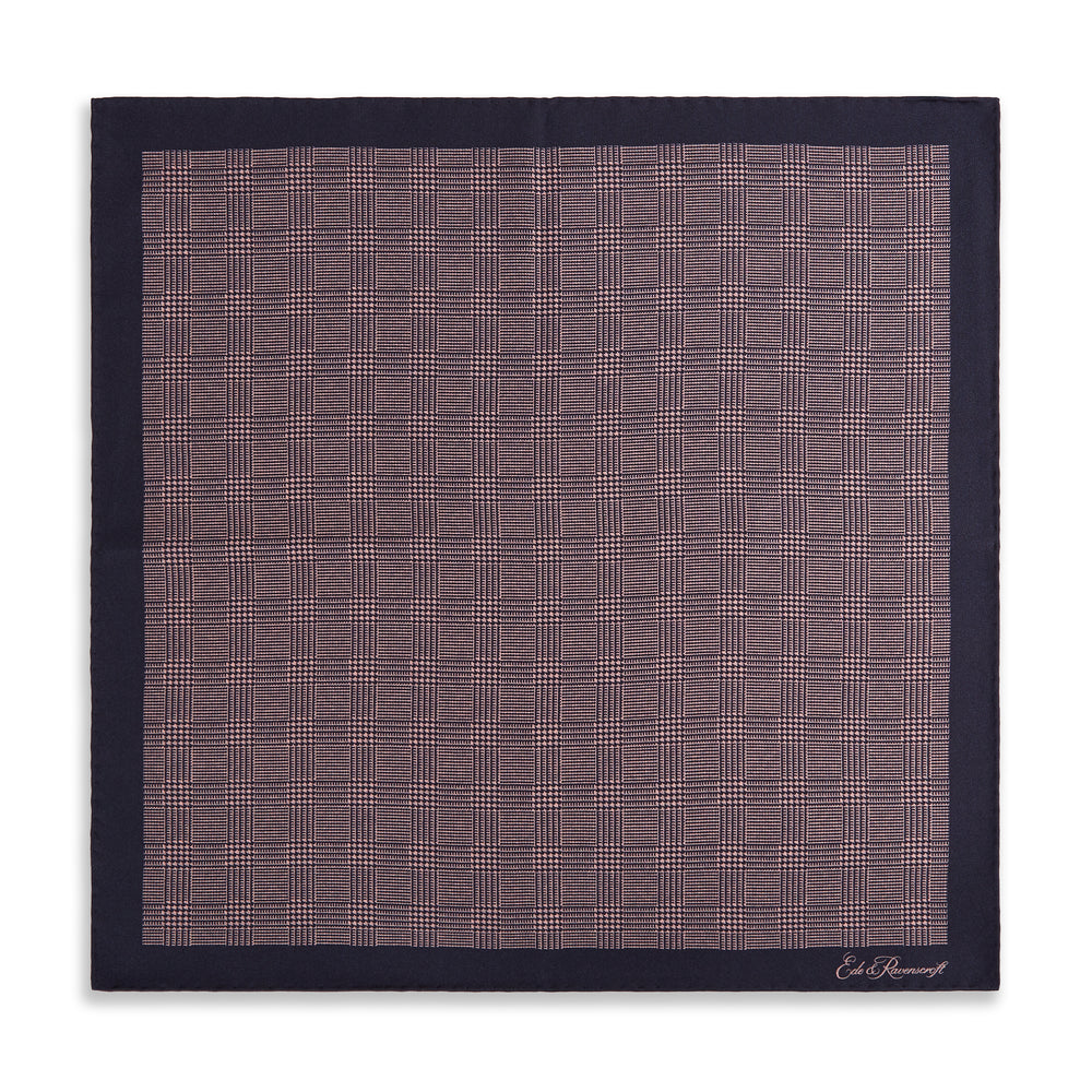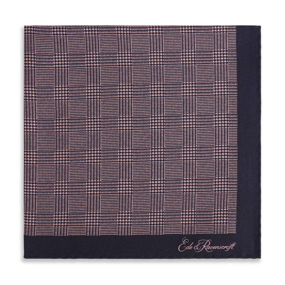 Pink Navy Prince of Wales Geometric Double Faced Silk Pocket Square