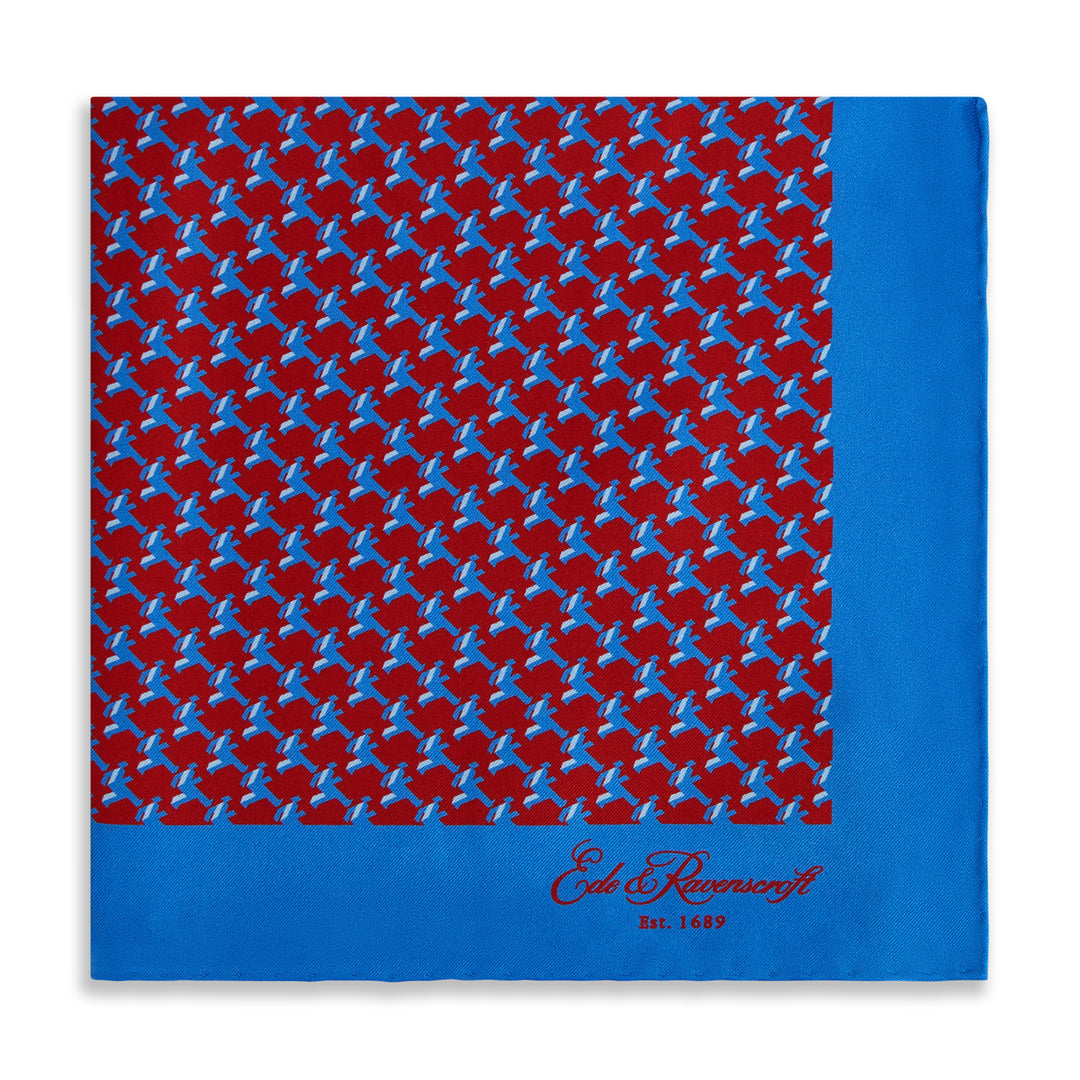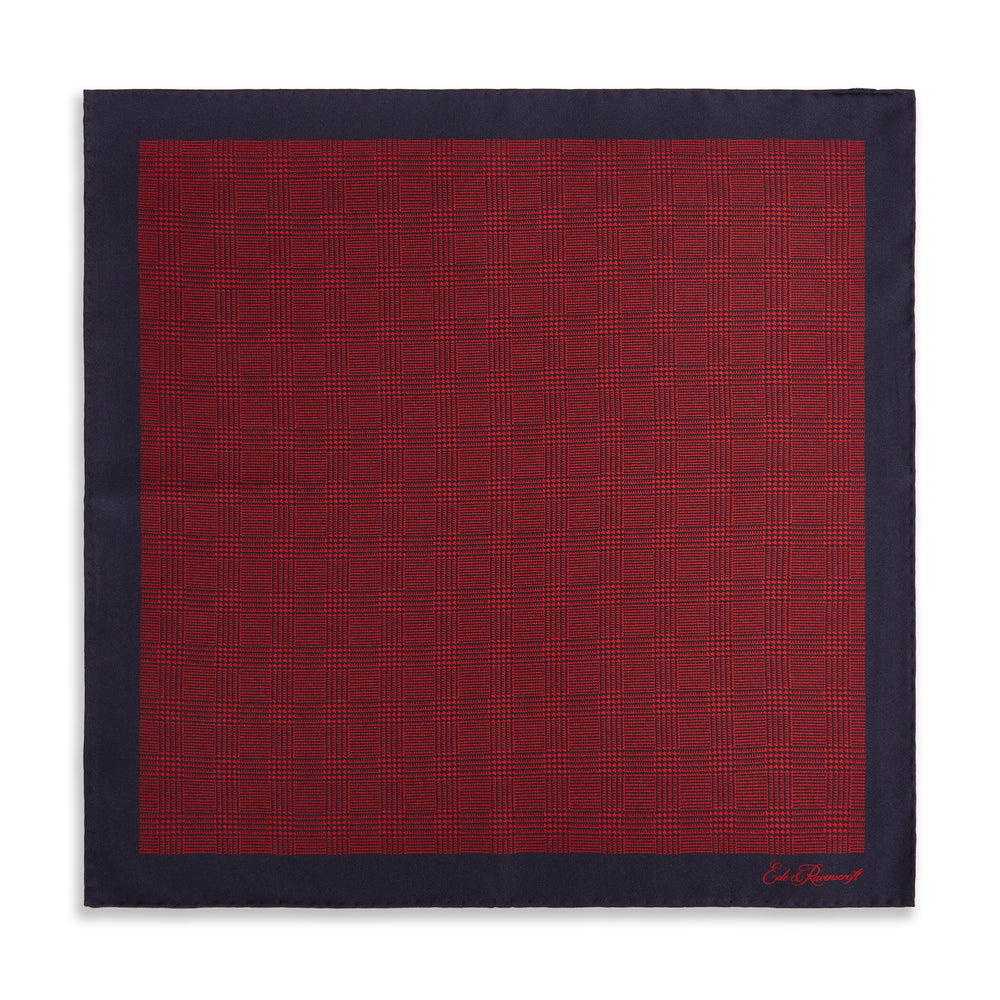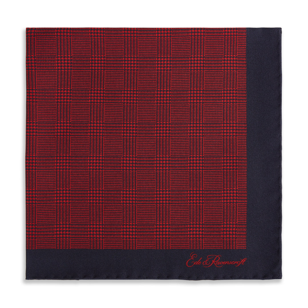 Red Navy Prince of Wales Geometric Double Faced Silk Pocket Square.