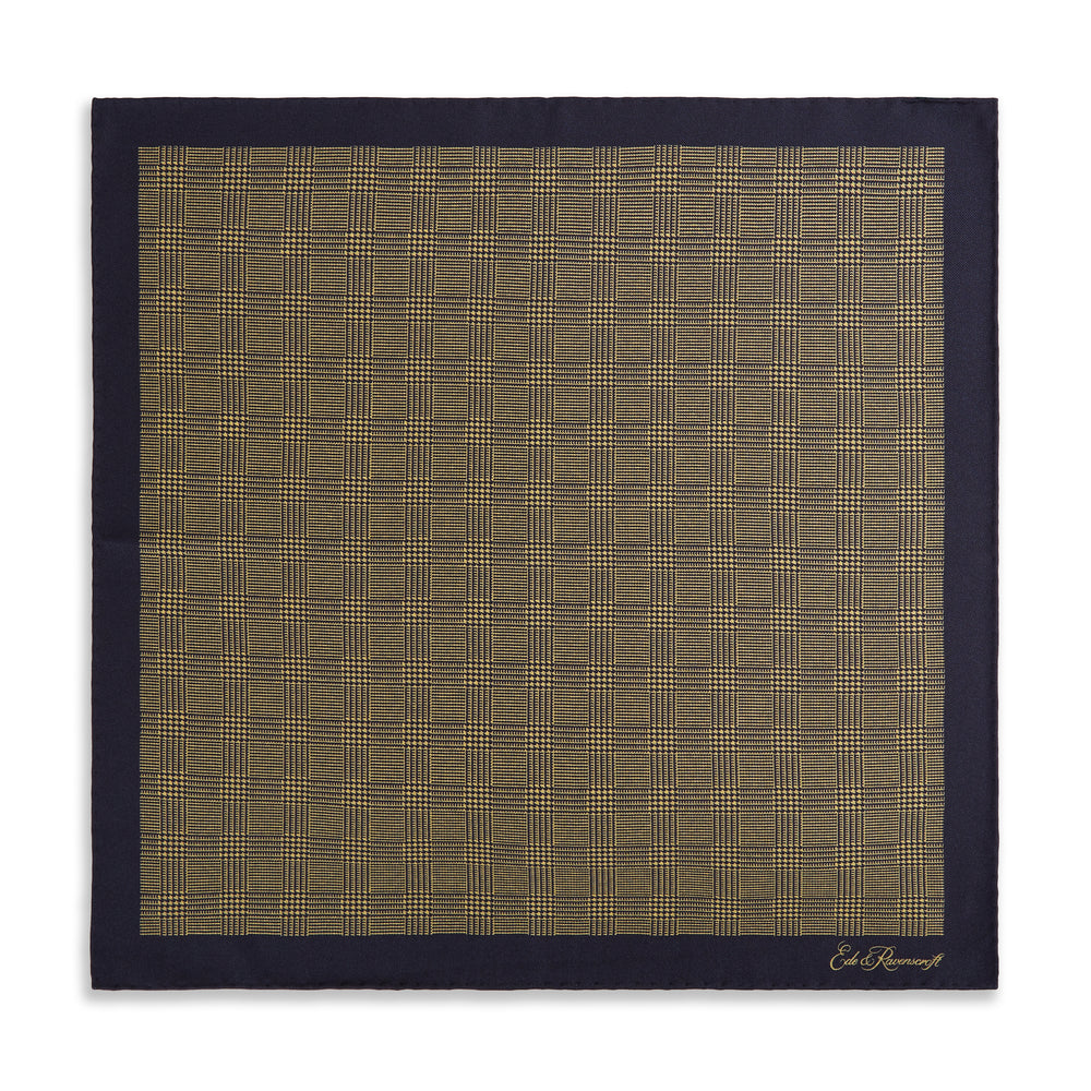 Yellow Navy Prince of Wales Geometric Double Faced Silk Pocket Square