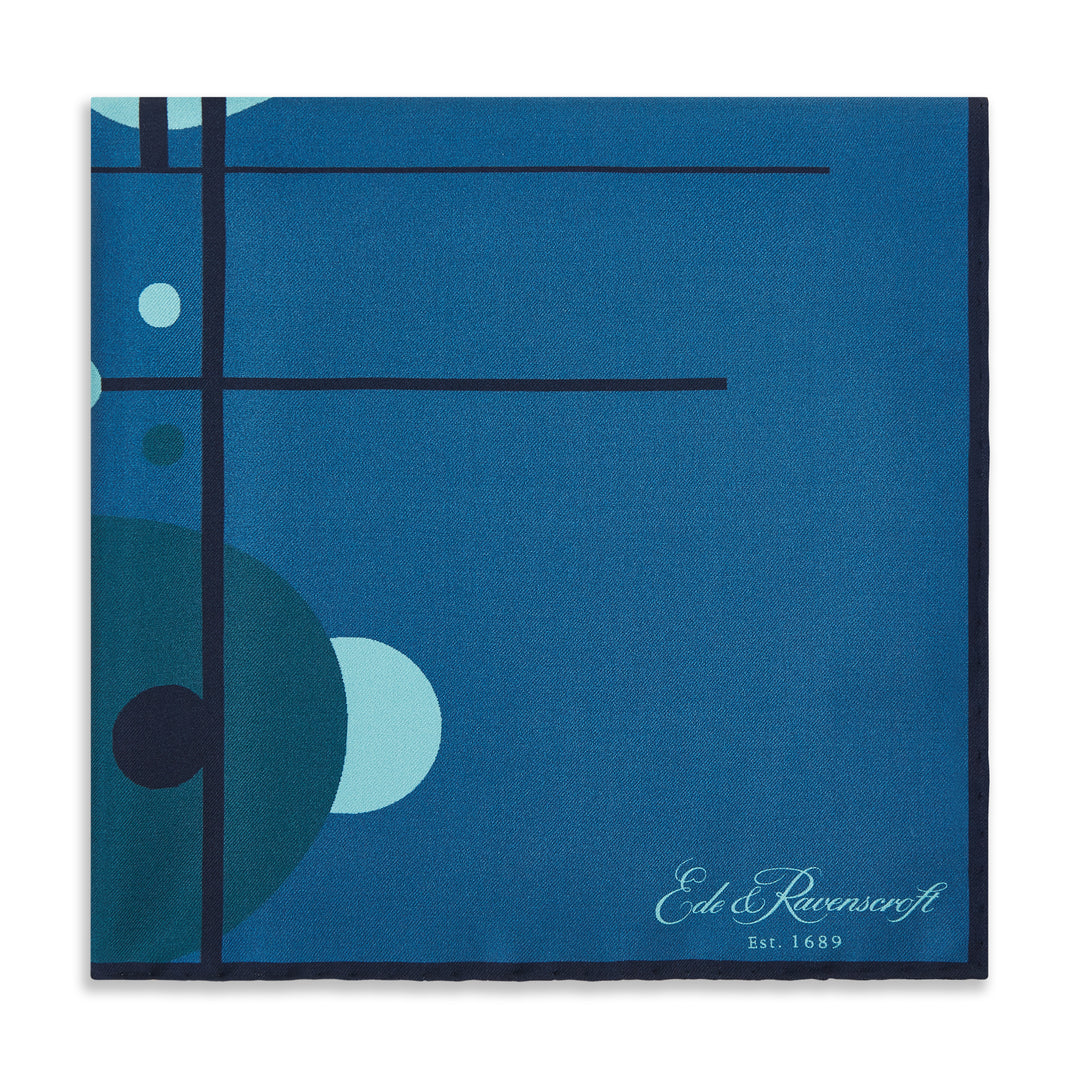 Blue Abstract Circle Grid Silk Pocket Square