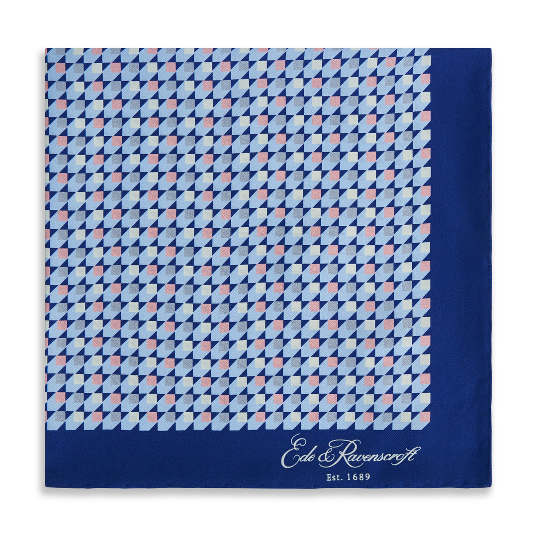 Blue Geo Print Silk Pocket Square