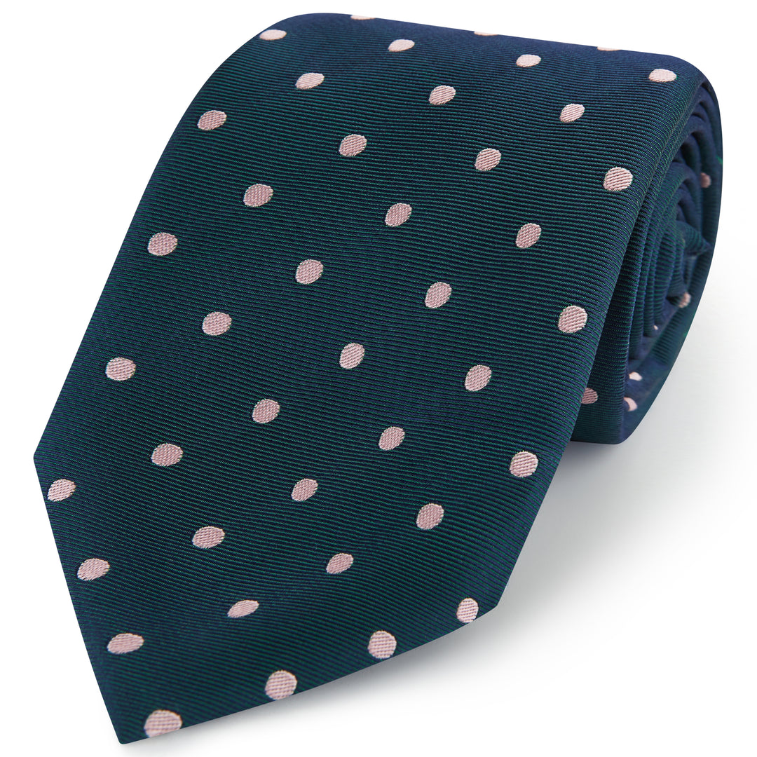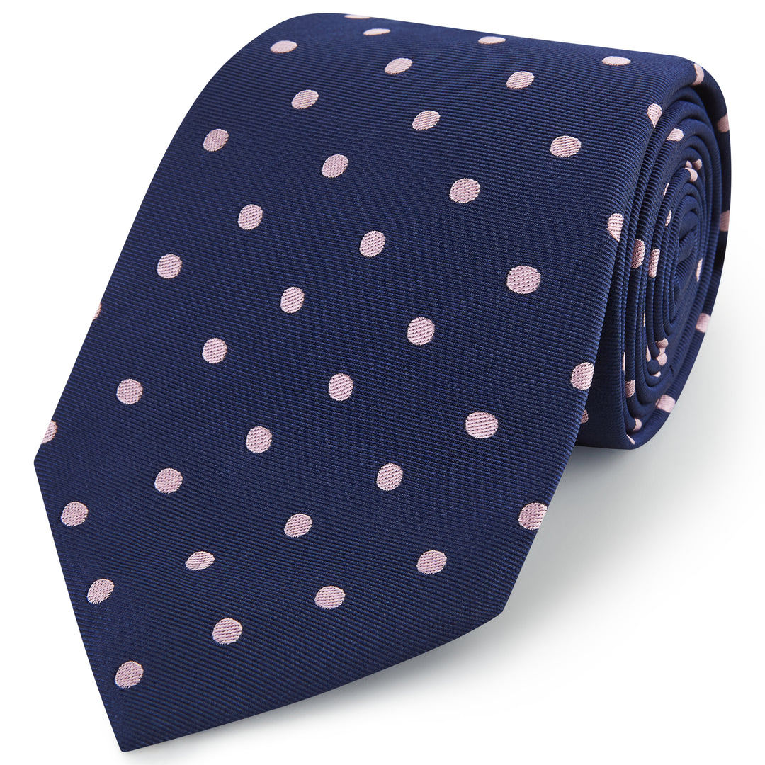 Navy Pink Churchill Spot Woven Silk Tie