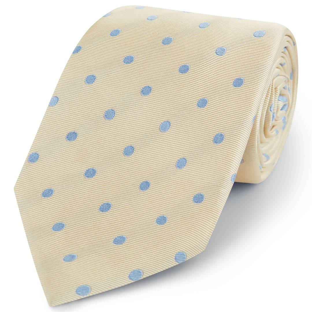 Ecru Blue Churchill Spot Woven Silk Tie