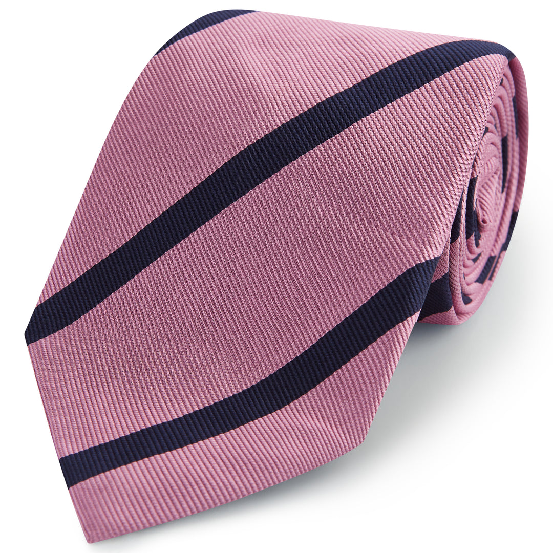 Pink Navy Twill Stripe Woven Silk Tie