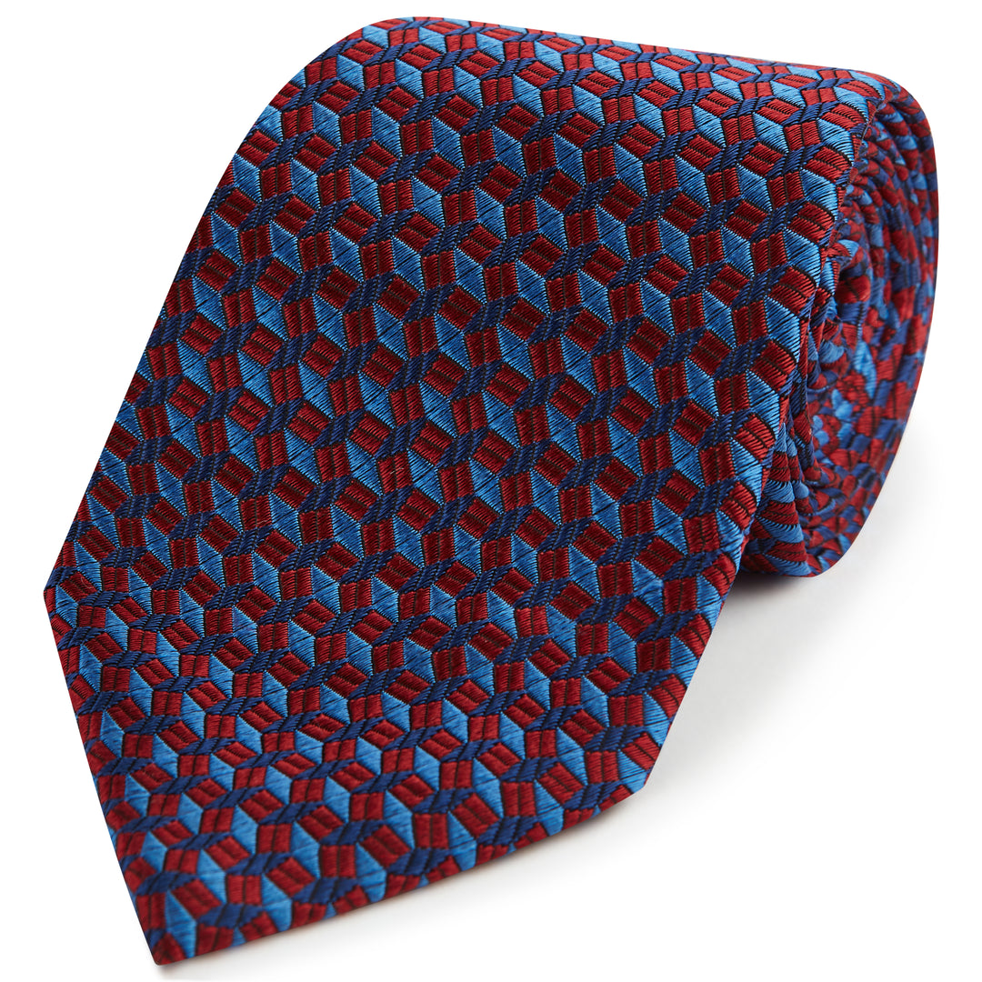 Red Blue Diamond Geometric Woven Silk Tie