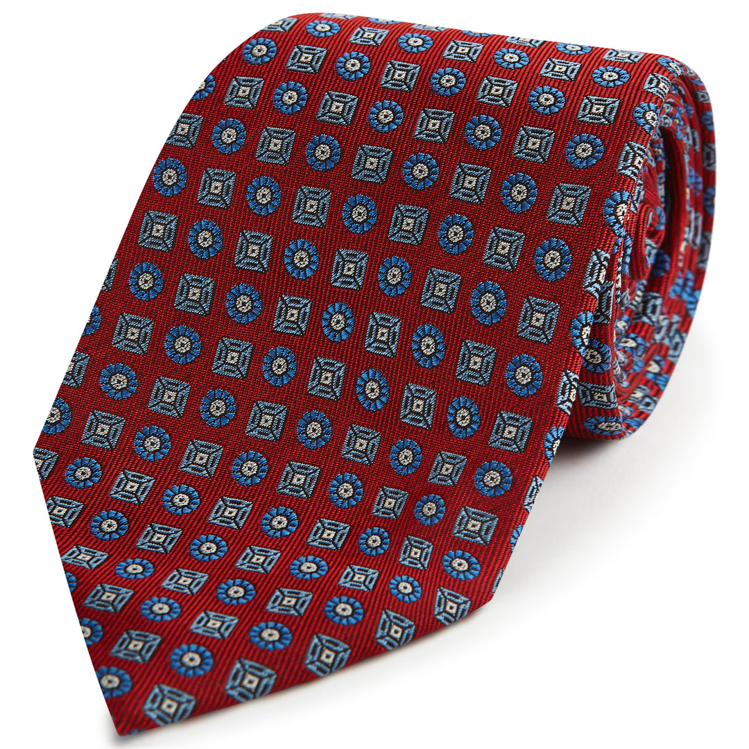 Red Blue Circle Diamond Woven Silk Tie