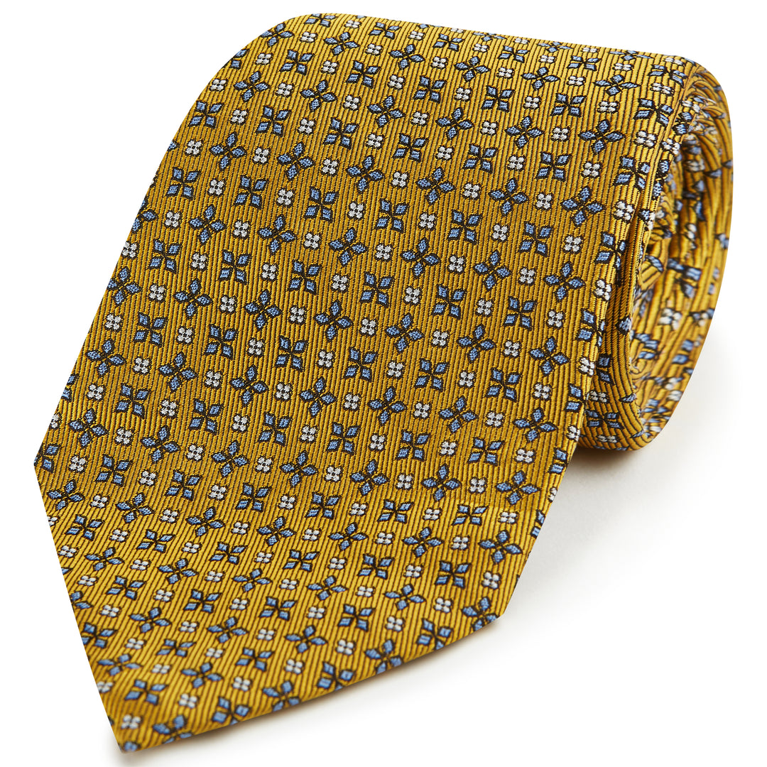 Yellow Geo Floral Woven Silk Tie