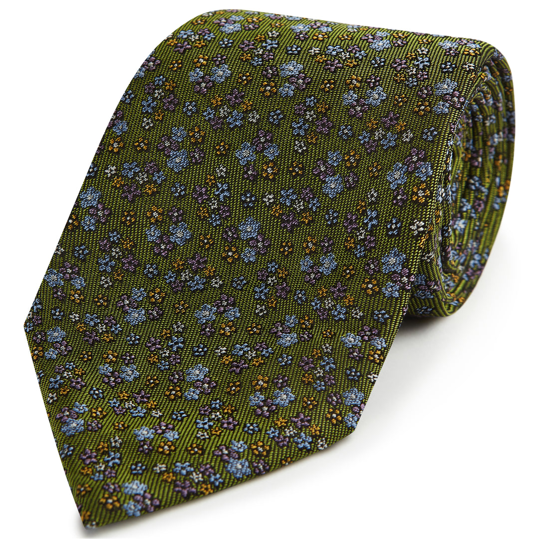 Green Twill Floral Woven Silk Tie