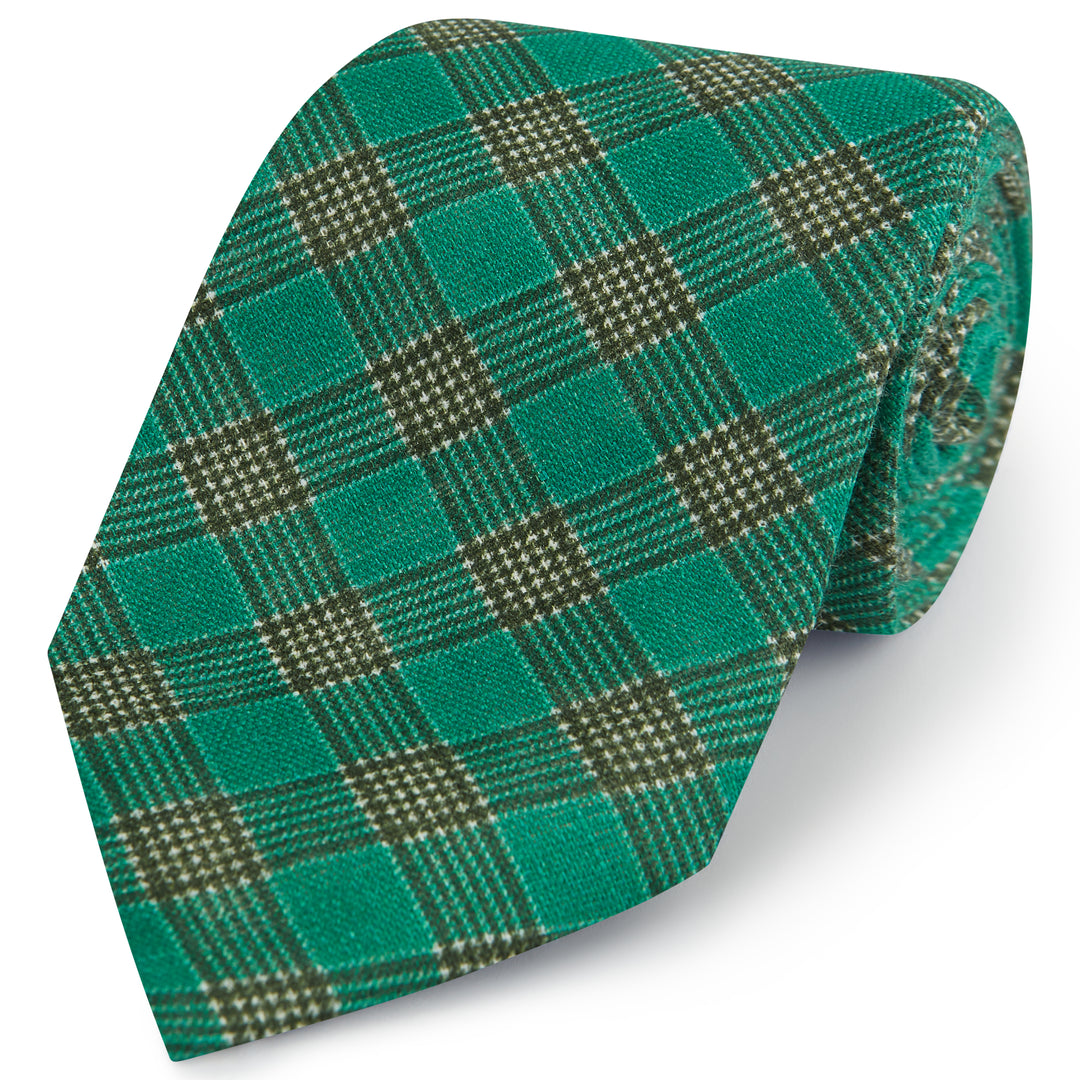 Green Check Linen Woven Tie