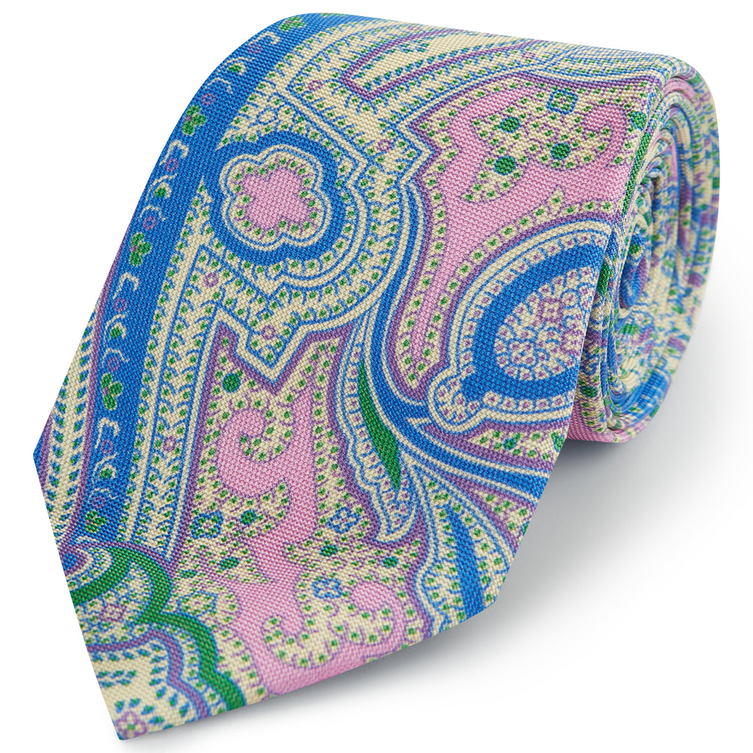 Pink Large Paisley Printed Silk Tie