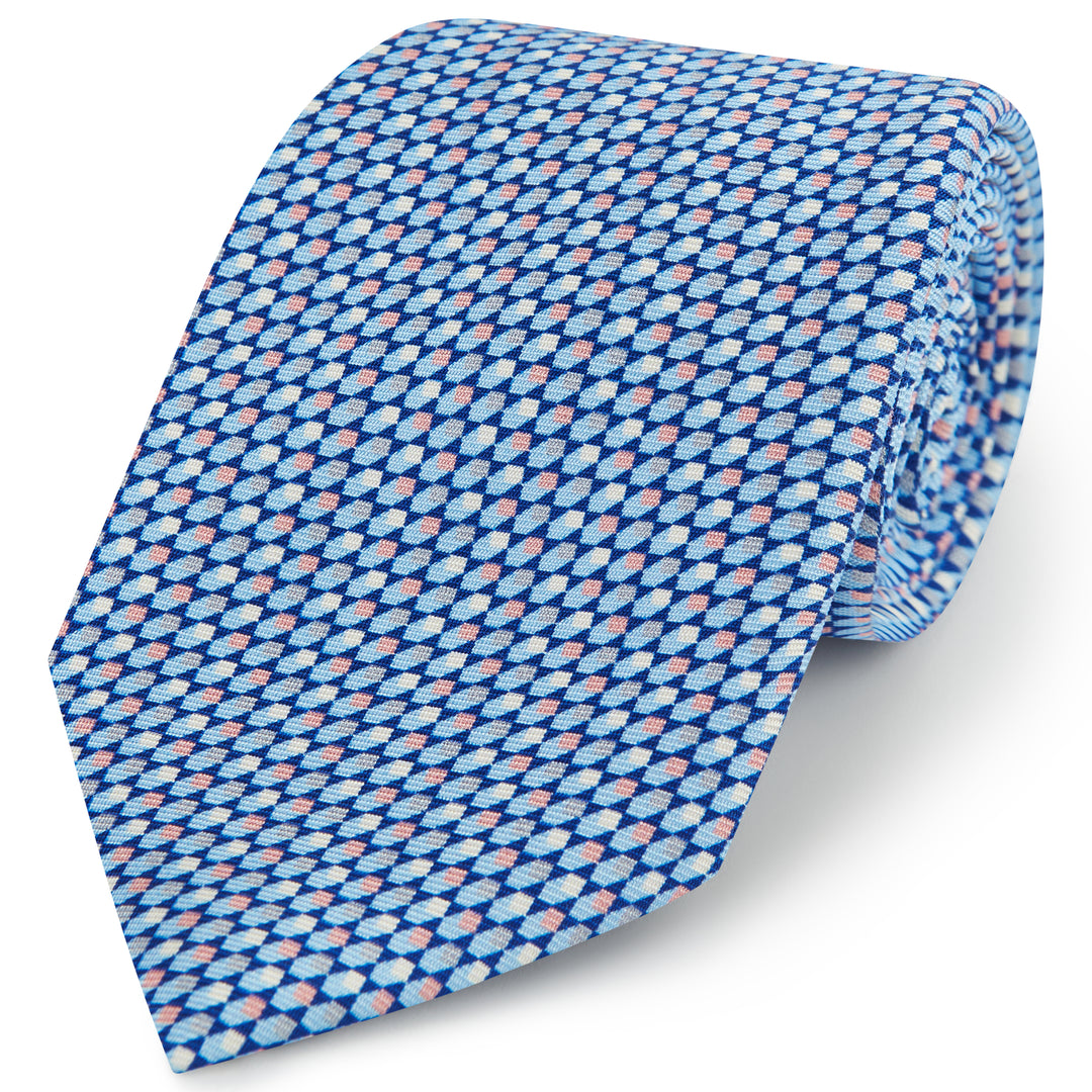 Blue Geo Cubic Printed Silk Tie