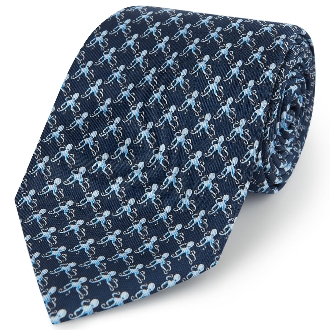 Navy Blue Octopus Printed Silk Tie