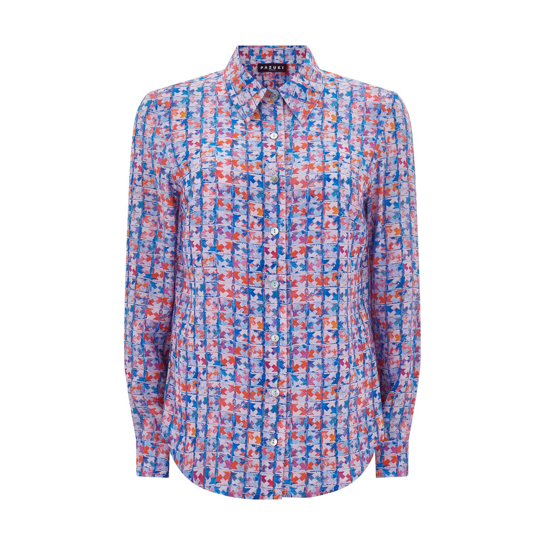 This Pazuki shirt is a classic easy fit shirt, featuring a shirt tail curved hem and a 'Arrow Check' print thought-out the shirt. A lightweight, durable, and breathable fabric, known for its soft, matte sheen and fluid drape. Wear with tailored trousers or skirts for work, or with jeans and trainers for a more casual look.