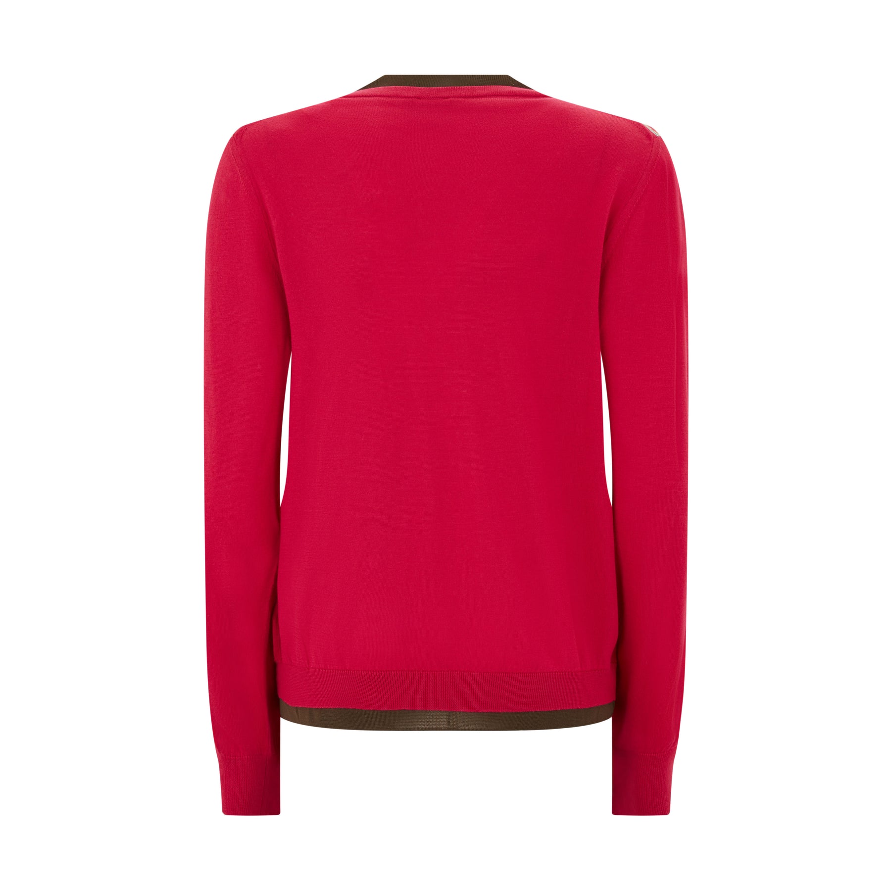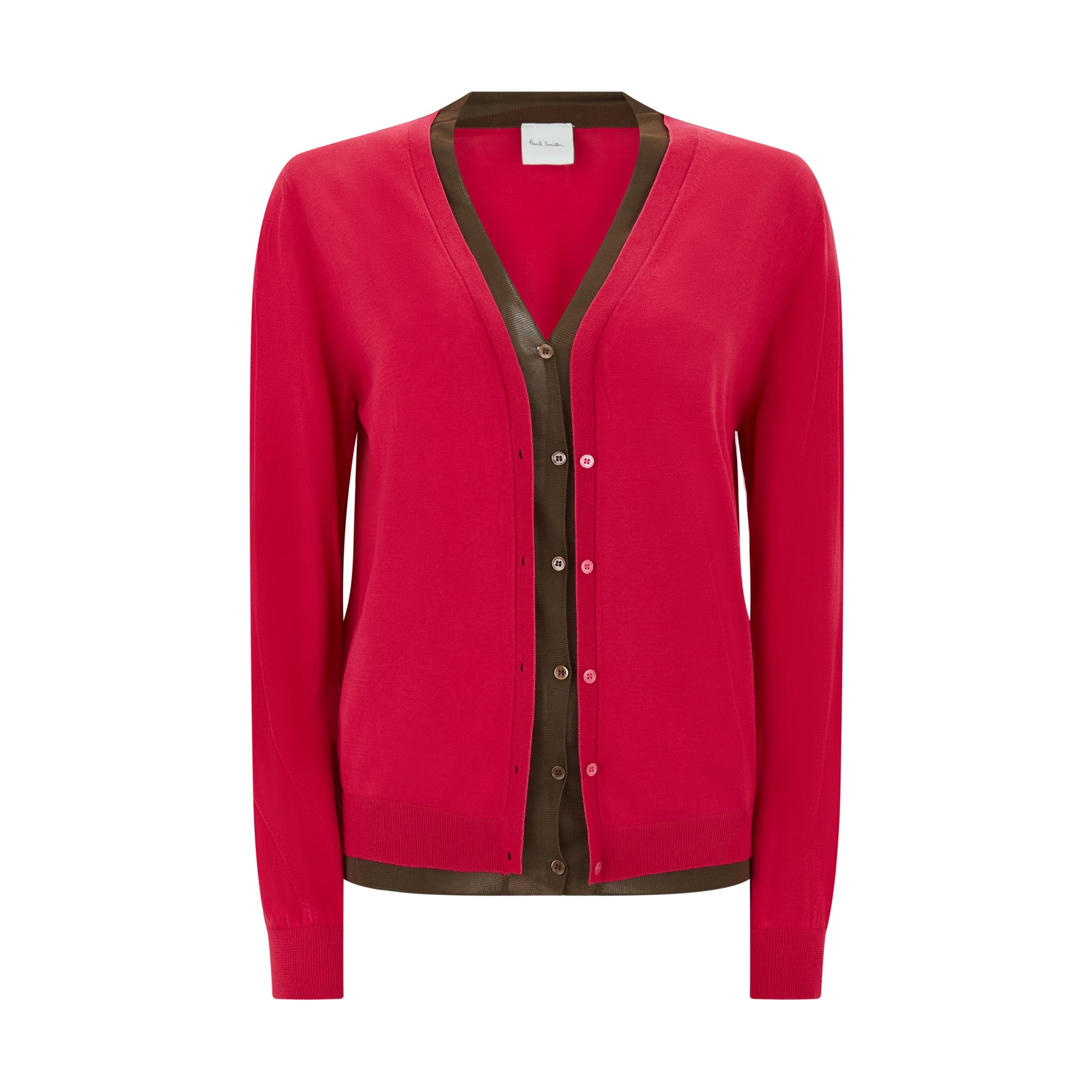 Made from a blend of organically grown cotton and viscose for a lightweight knit, this fuchsia cardigan features the illusion of a double-knit design. Featuring tonal stitching and pearlescent button fastenings. An elegant choice for everyday wear, from casual settings to a polished office look. Also available in Black.