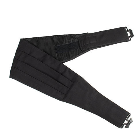 The Black cummerbund is made from traditional silk Barathea and is worn for formal dress occasions. Elasticated sides that fasten with a metal hook flank the pleats. Suitable for sizes from 32” to 42”. Made in England.