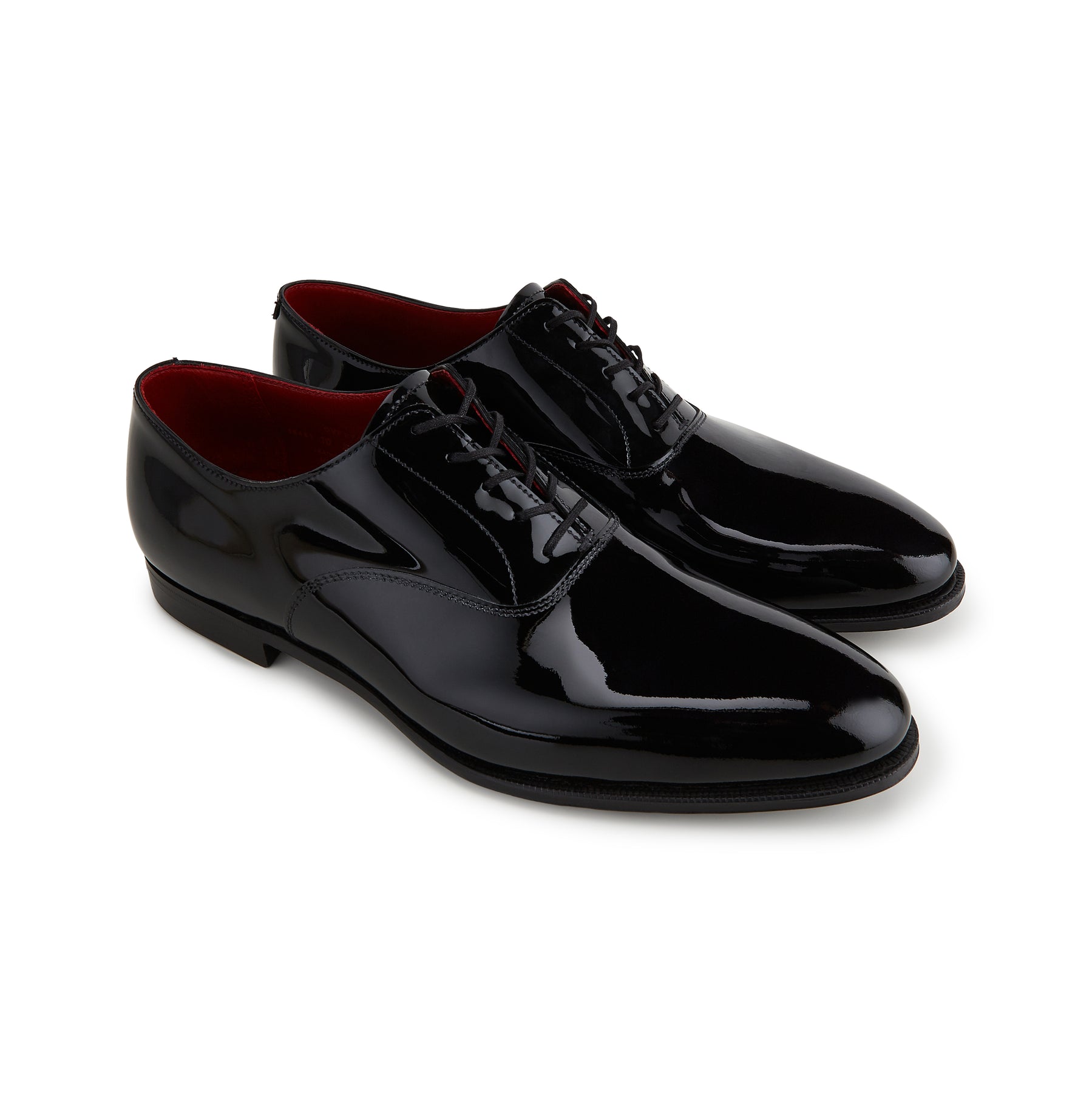 The Overton patent Oxfords are made by traditional methods in England. Perfect footwear for formal dress occasions such as white and black tie.