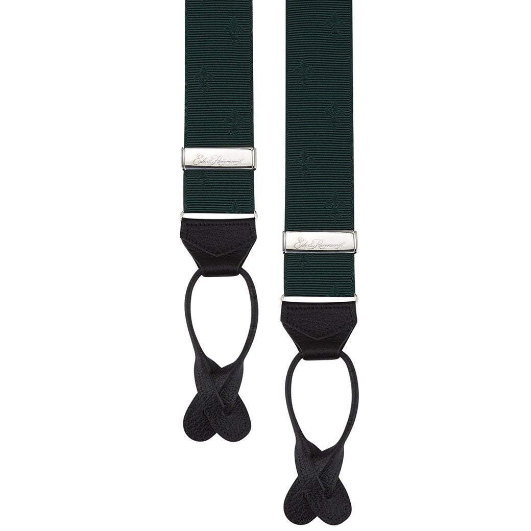 Crafted in England, these embroidered Fleur de Lys braces and are ideal for formal occasions. They feature leather button ends and engraved hand polished nickel levers. Fully adjustable they make a stylish alternative to a belt