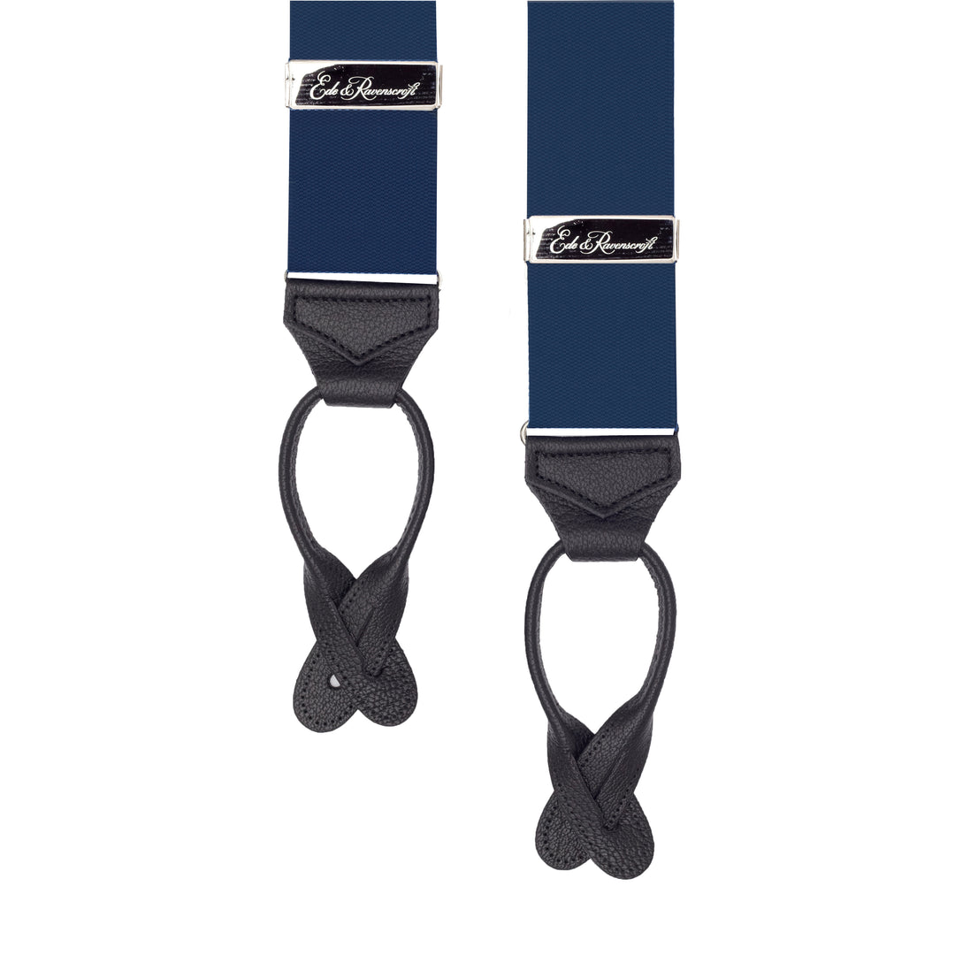 Crafted in England, these webbed barathea braces feature black leather button ends and hand polished engraved nickel levers. Fully adjustable they make a stylish alternative to a belt.