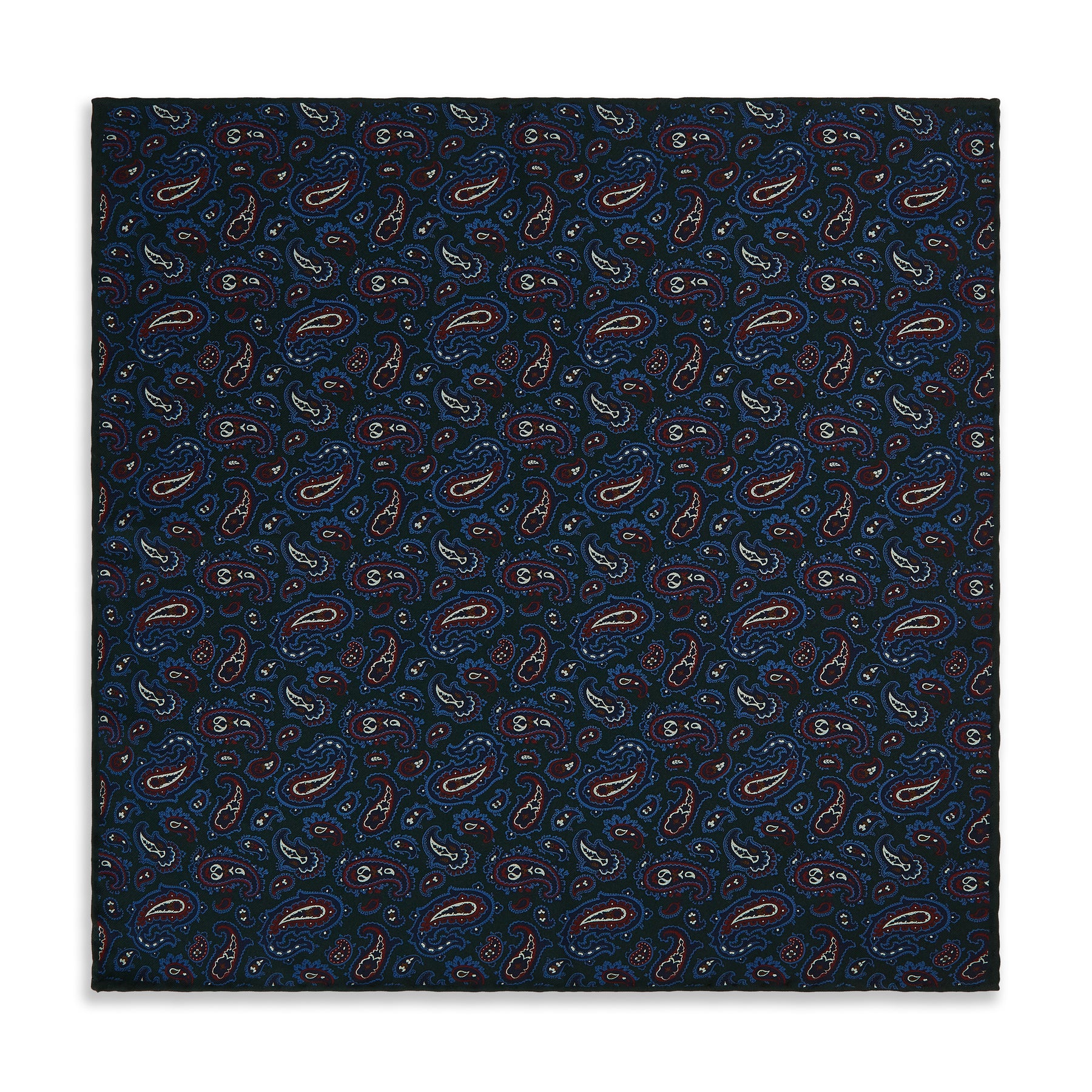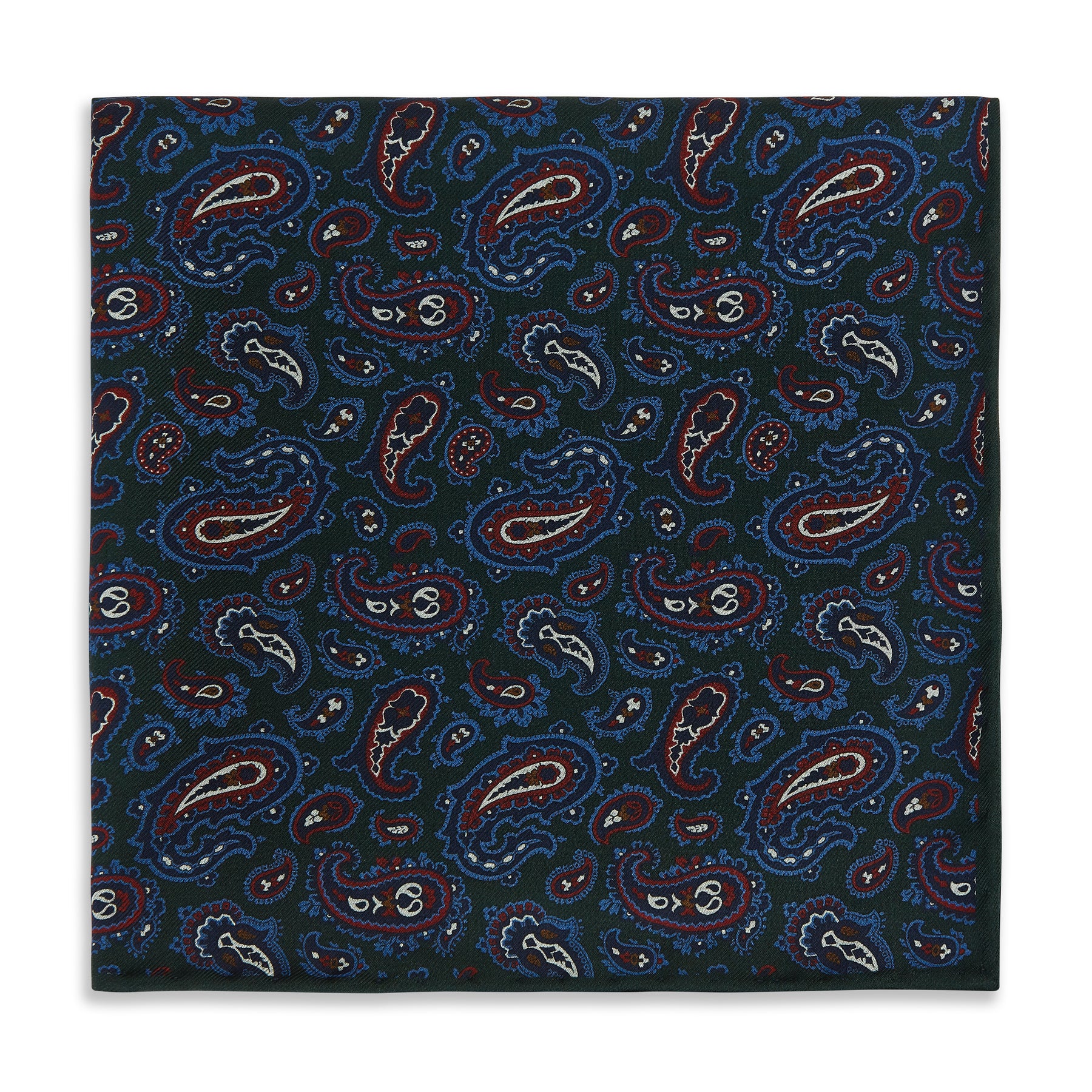 Green Navy Paisley Madder Silk Reversible Pocket Square