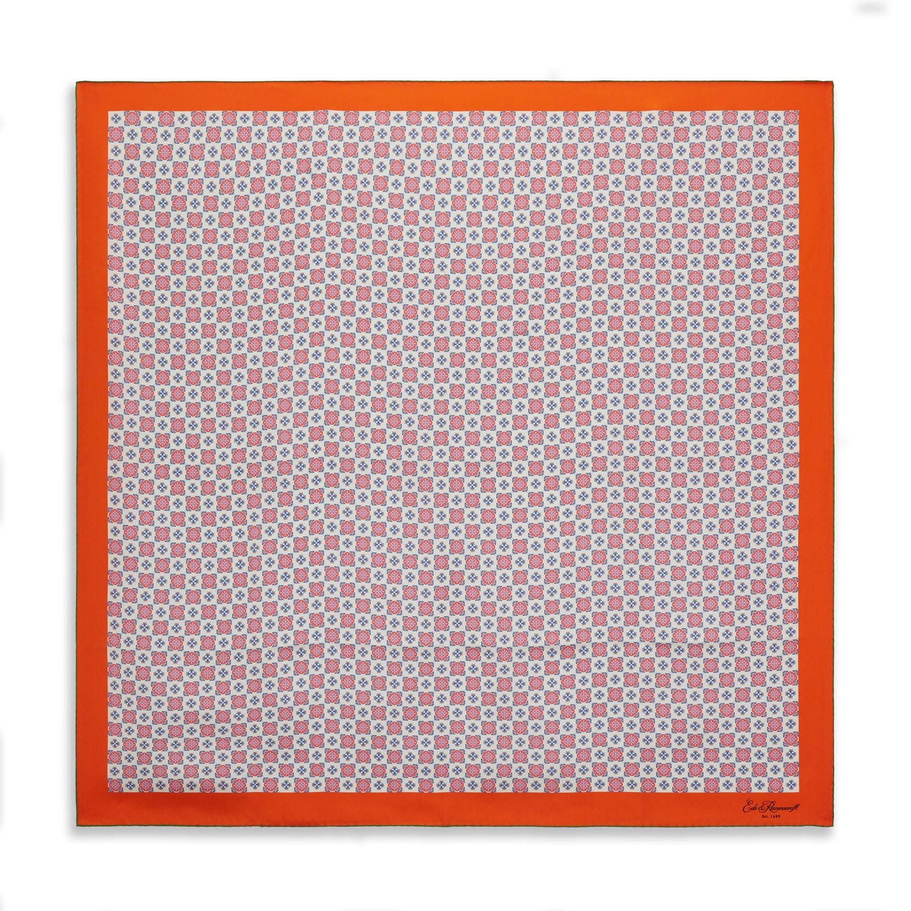 An elegant silk scarf, featuring a tile print throughout the scarf. Crafted from soft, delicate silk, which feels divine next to the skin, this luxurious scarf offers a beautiful pop of colour to any outfit.