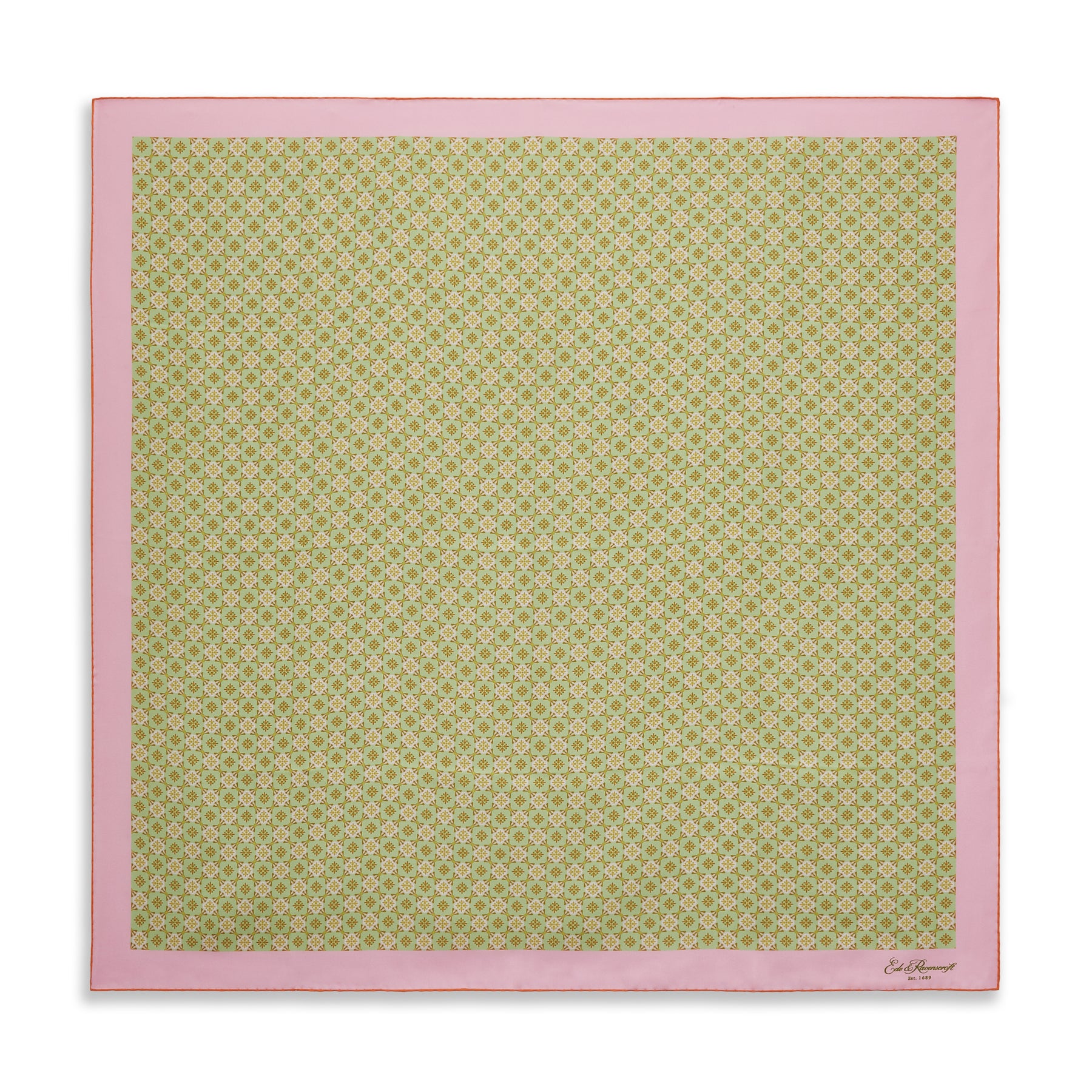 An elegant silk scarf, featuring a tile print through-out the scarf. Crafted from soft, delicate silk, which feels divine next to the skin, this luxurious scarf offers a beautiful pop of colour to any outfit.