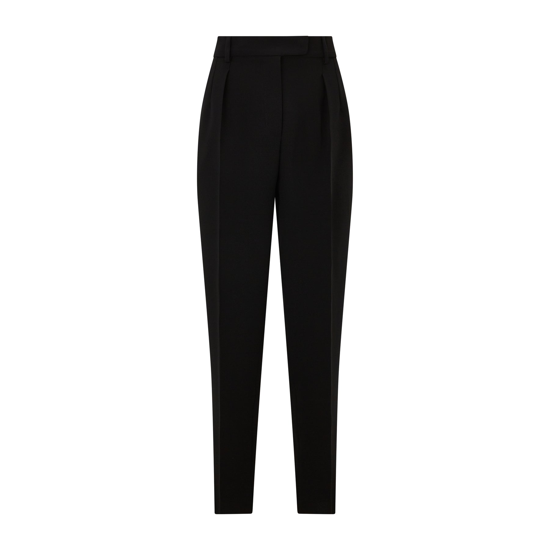 Max Mara trousers featuring regular waist with pleats on the front, darts at the back waist and slant pockets on the hips. Closure with high waistband, zip with flap and hook. Also available in black.