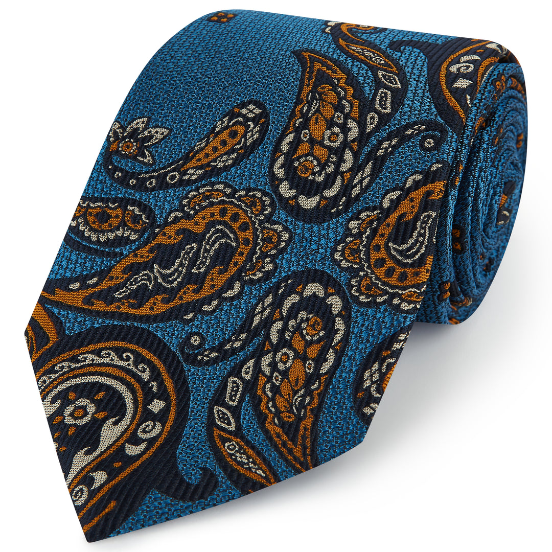 Orange Blue Medallion Madder Reversible Silk Pocket Square