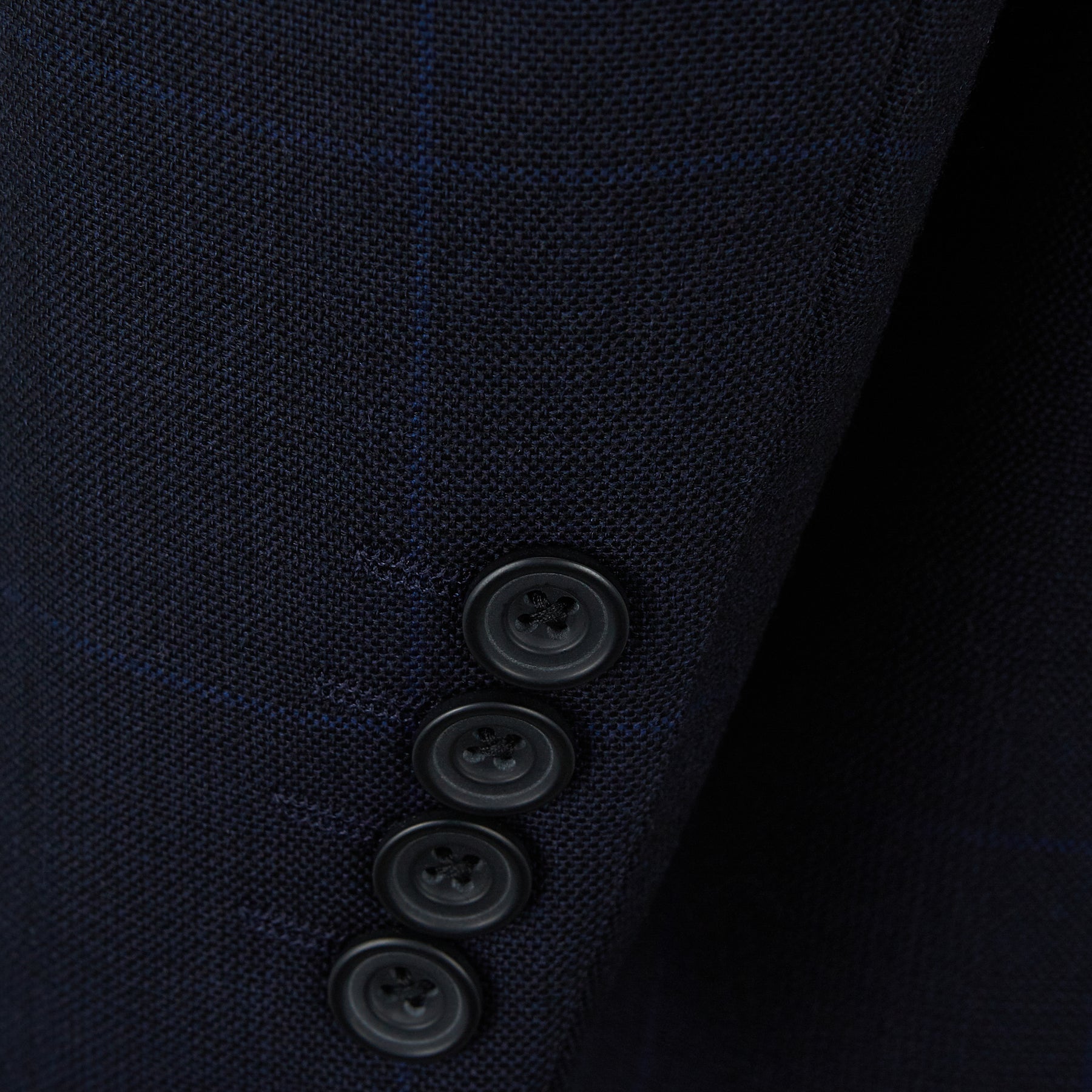 This classic fit suit is crafted from a classic check wool. It comes with a single pair of pleated trousers.