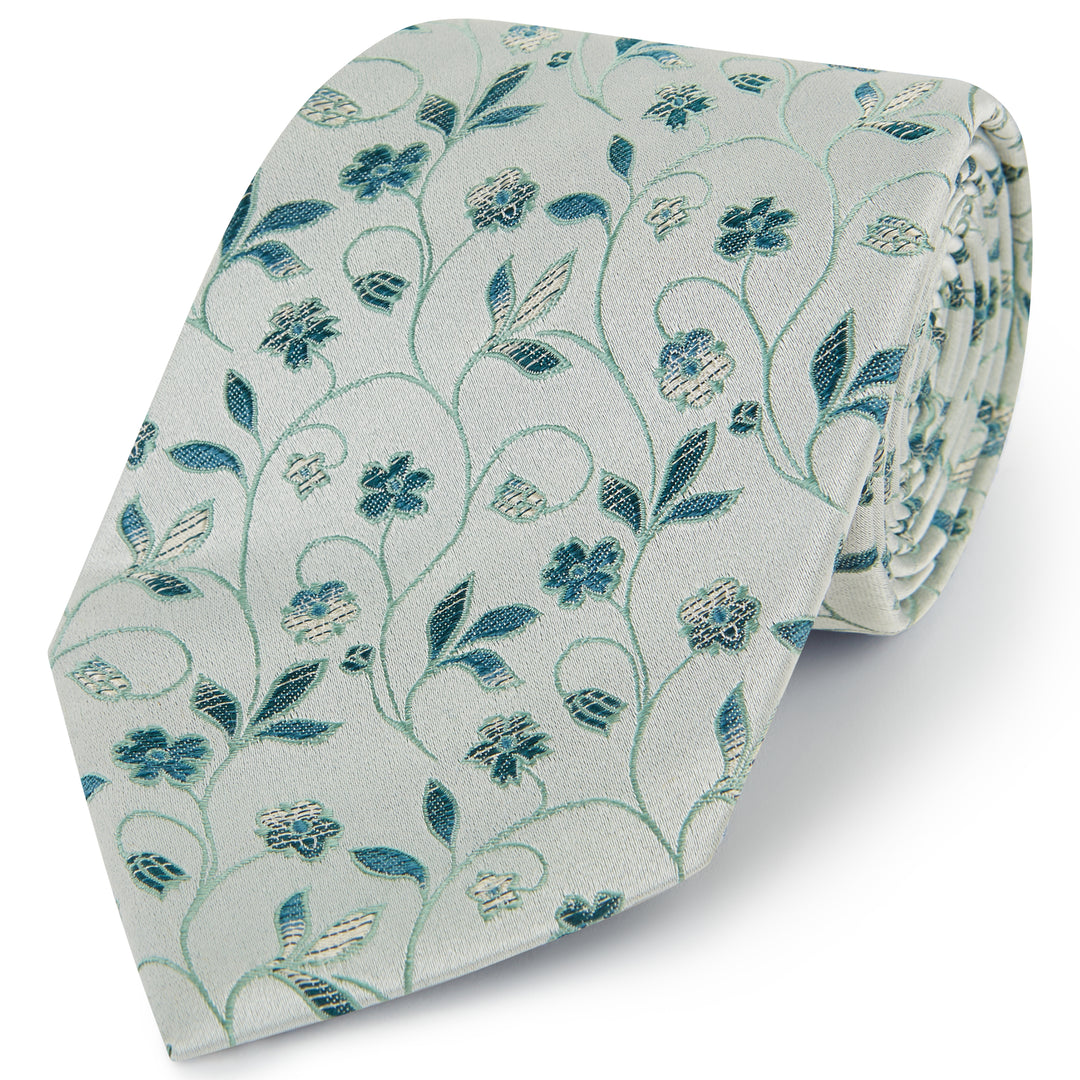 Green Blue Climbing Floral Woven Silk Tie