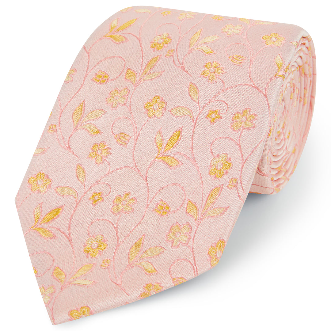 Pink Yellow Climbing Floral Woven Silk Tie