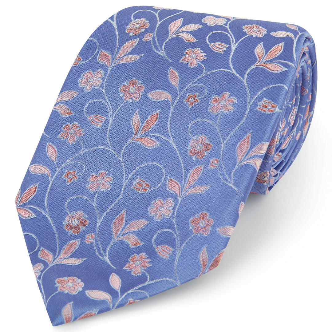 Blue and Pink Large Floral Woven Silk Tie