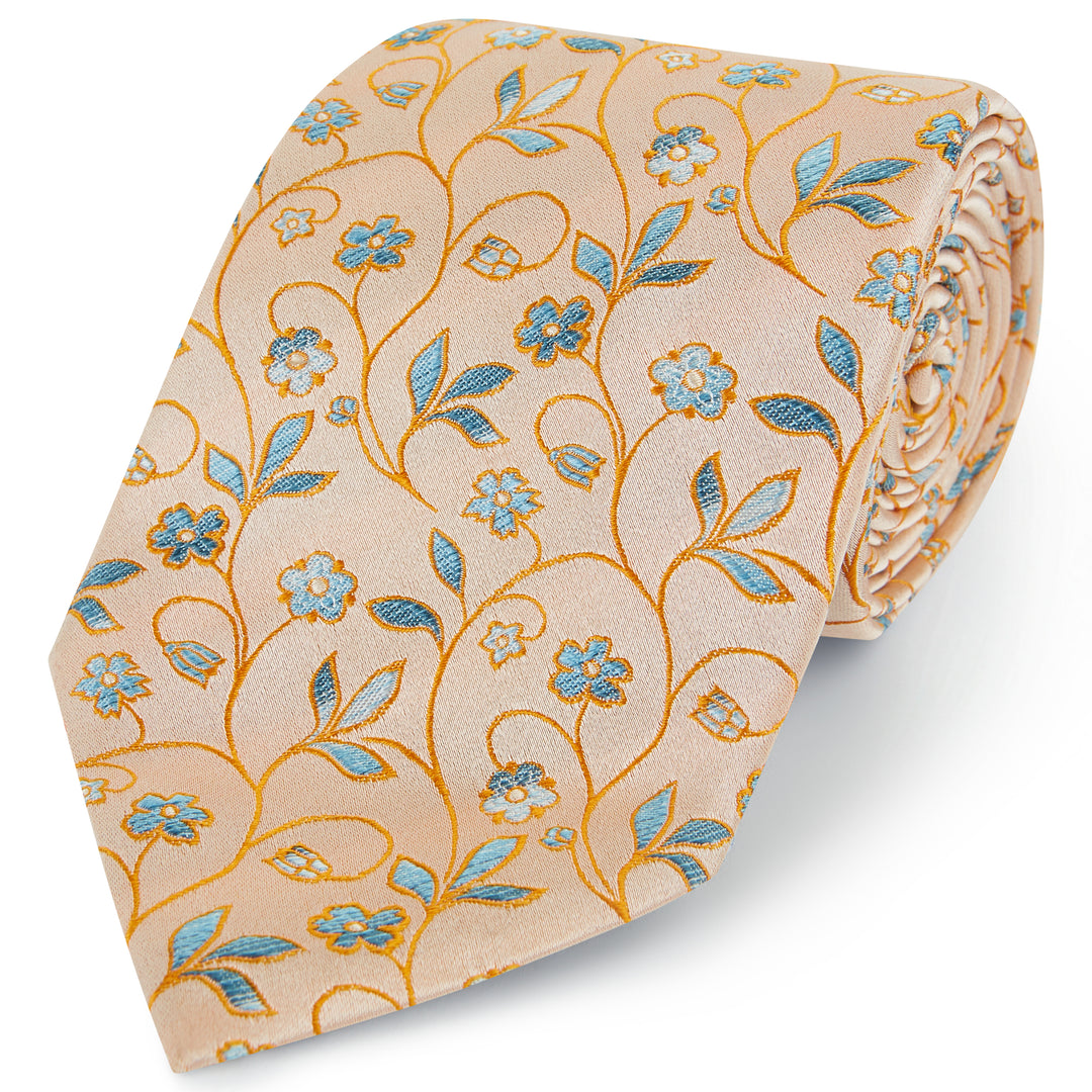 Orange Blue Climbing Floral Woven Silk Tie