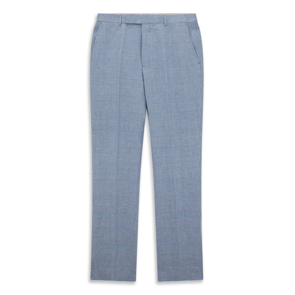 Barney Blue White Prince Of Wales Check Linen Trouser