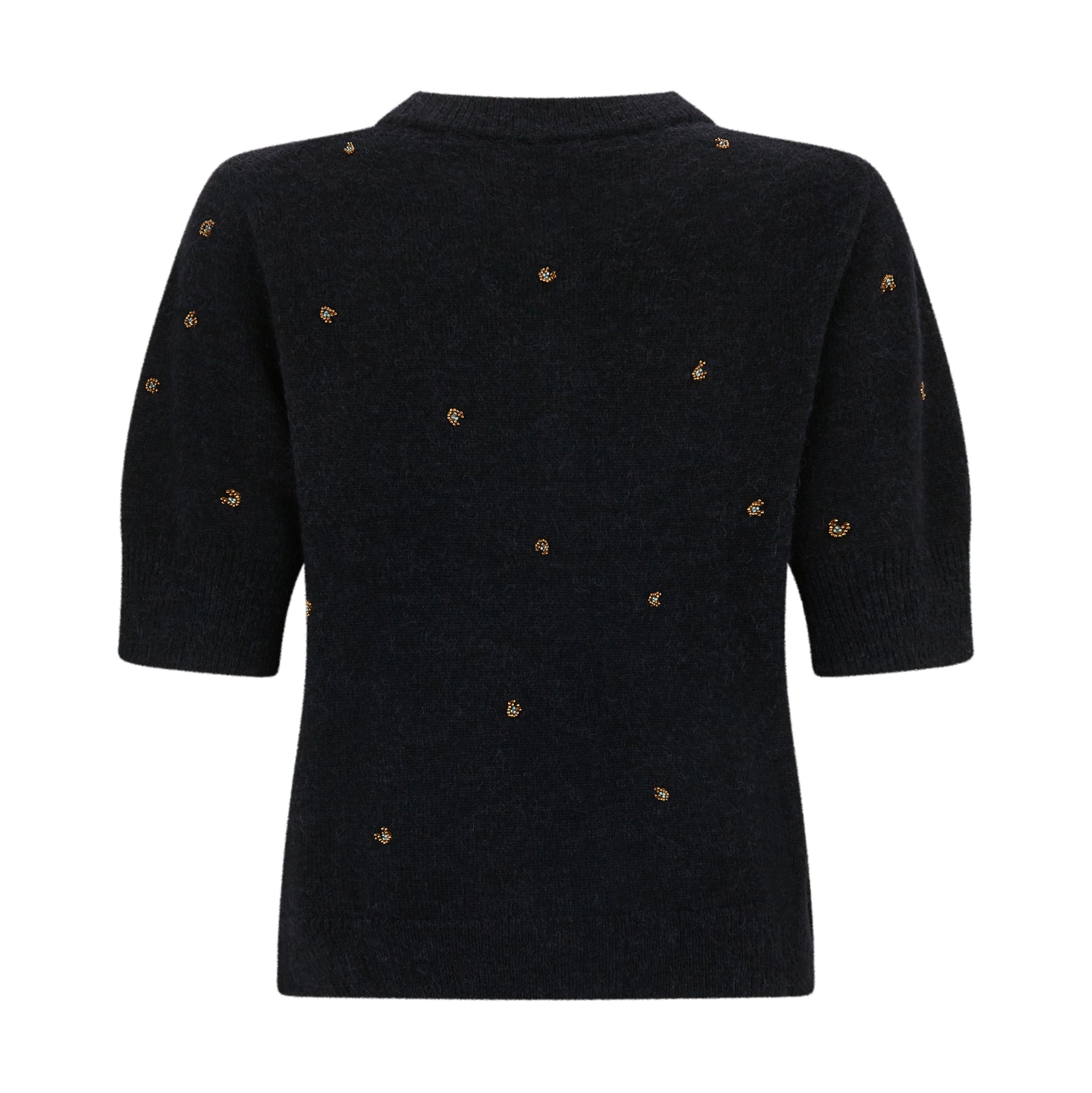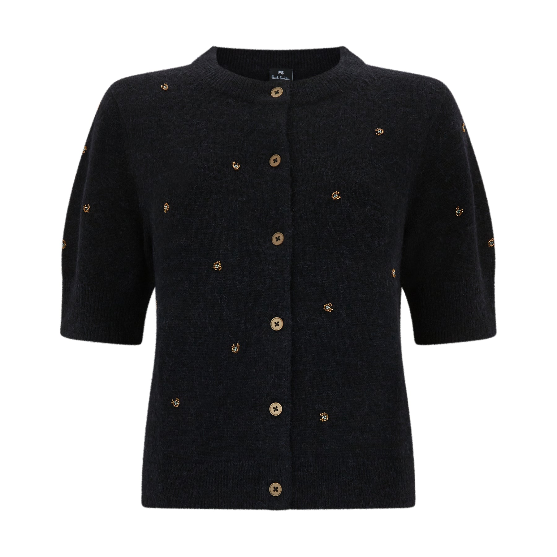 Paul Smith short-sleeve cardigan features beaded embroidery detailing throughout the cardigan. Featuring classic ribbed trims, this cardigan is complete with metallic button fastening. Also available in green.