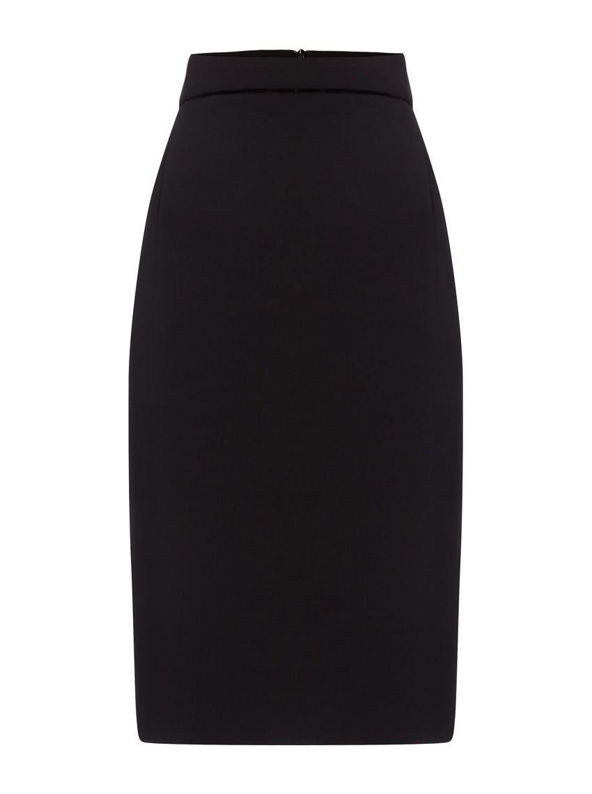Navy Joan Tailored Wool Crepe Pencil Skirt