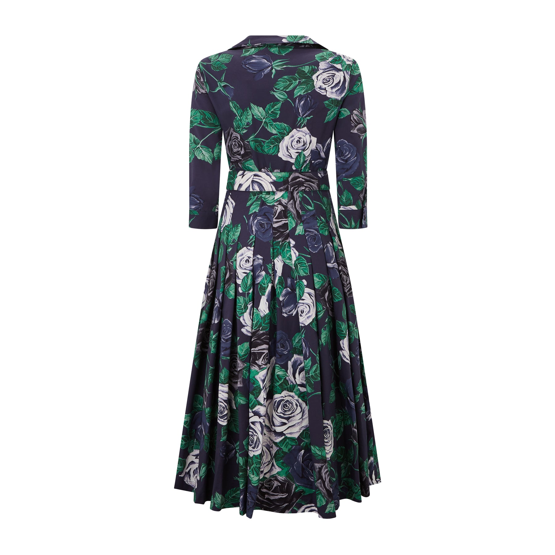 The Samantha Sung Audrey dress is beautifully made and a wardrobe staple. The upper body is fitted with 3/4 length sleeves while the mid length skirt creates a flattering silhouette. The choice of waist belts allows you to customise and adapt your look. This dress presents a beautiful Rose design.