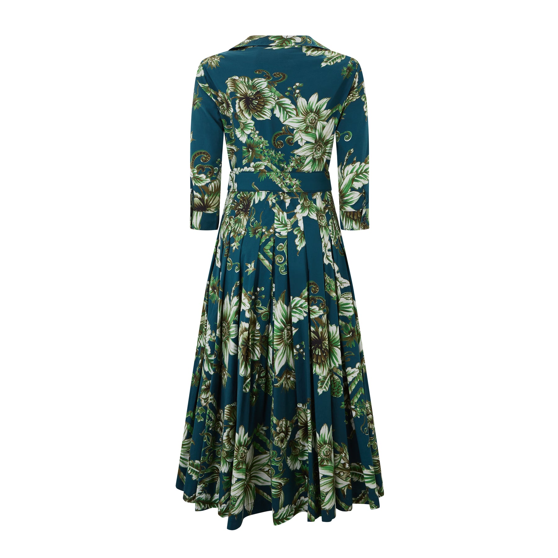 The Samantha Sung Audrey dress is beautifully made and a wardrobe staple. The upper body is fitted with 3/4 length sleeves while the mid length skirt creates a flattering silhouette. The choice of waist belts allows you to customise and adapt your look. This dress presents a beautiful Flower design.