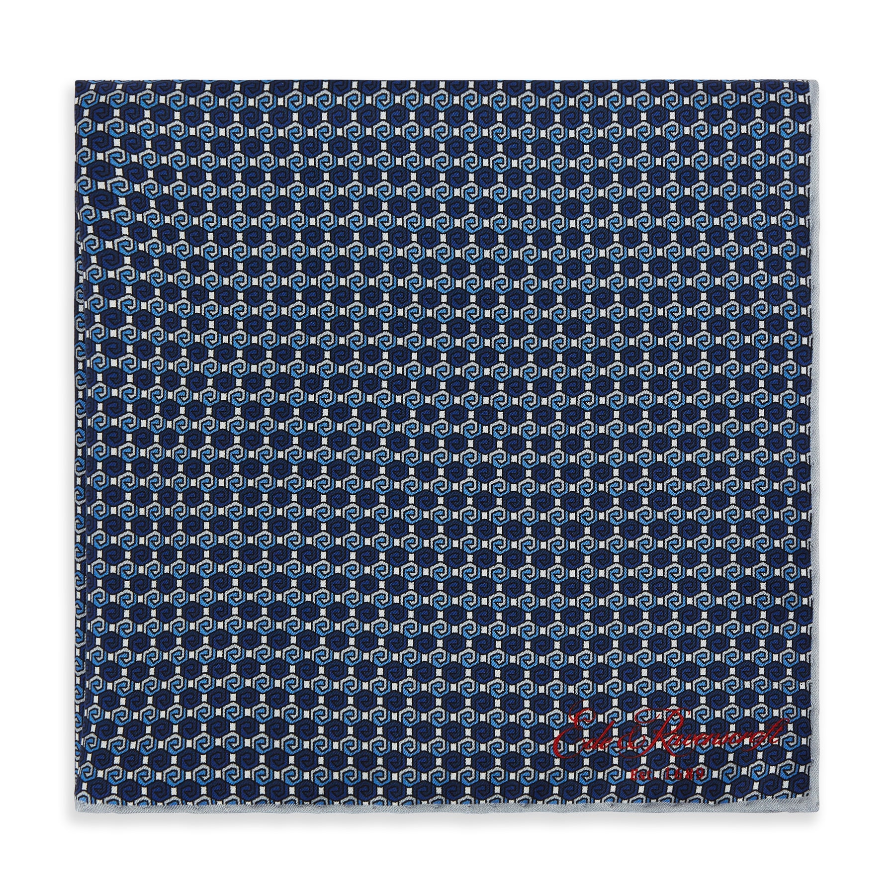 Printed in Macclesfield England, this playful, printed silk pocket square will compliment many outfits with a playful geometric design. Also available in Green and Red.