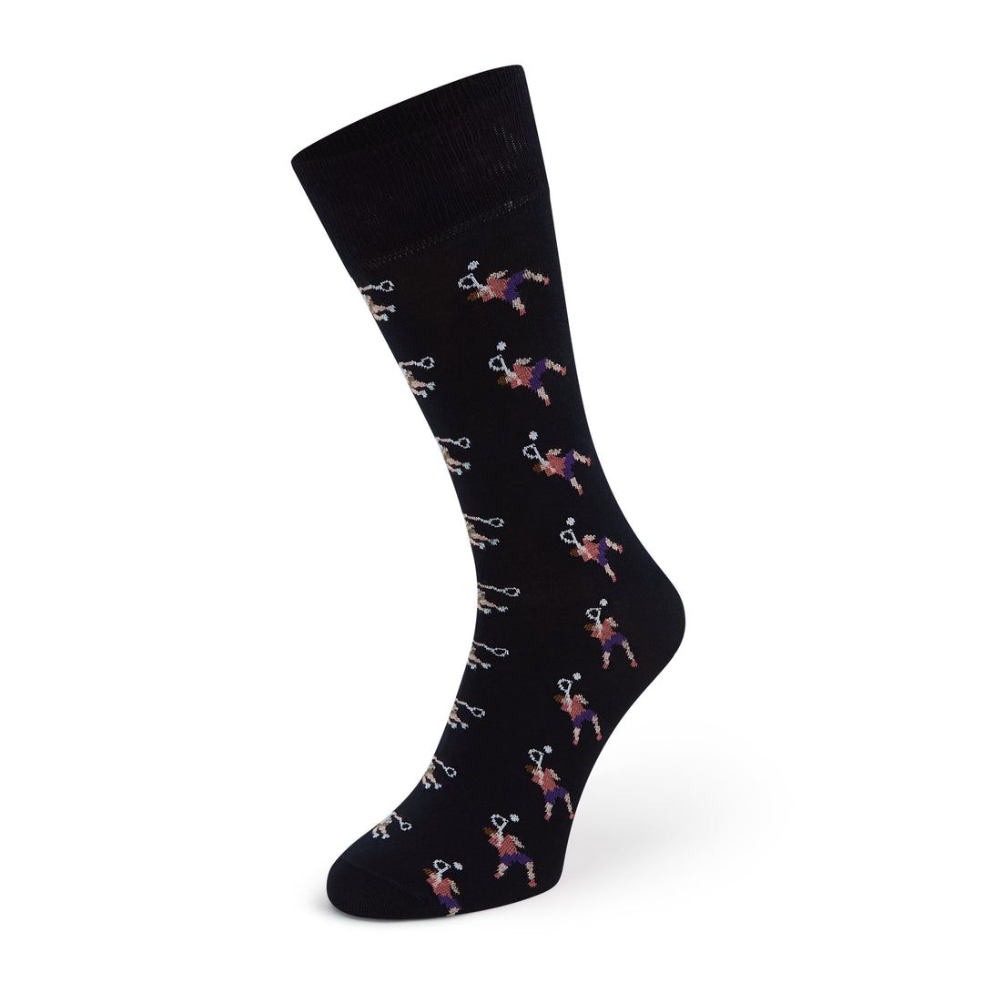 The Sutton, with all over charming tennis player pattern made in smooth cotton, finished with hand-linked toe seams for superior comfort. Made in Wales.