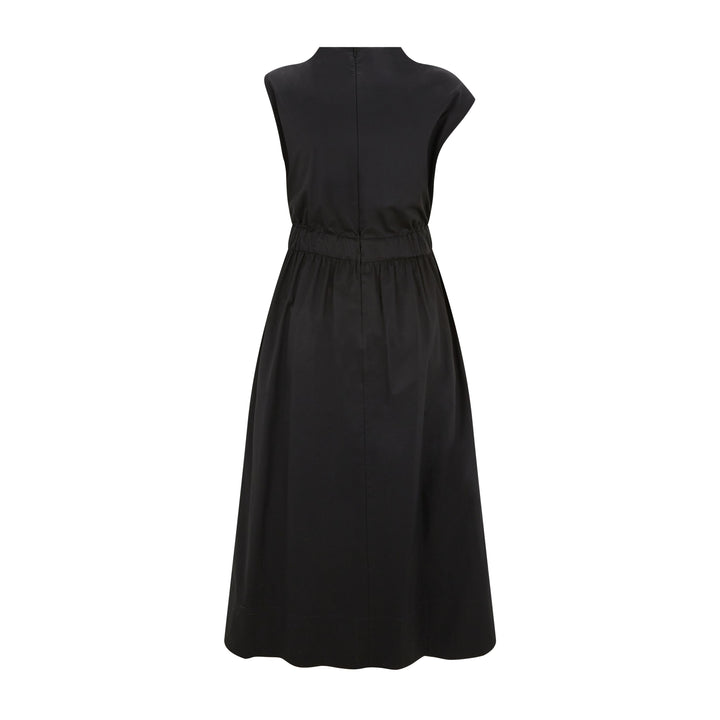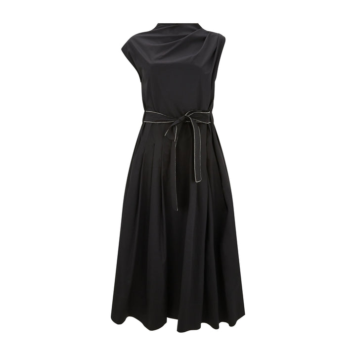 This long dress features a modern and feminine style. Featuring cap sleeves, crater neck, embellished with a ruffle on one shoulder, emphasises its elegance. Comes with a matching belt that ties at the front, which enhances the figure.