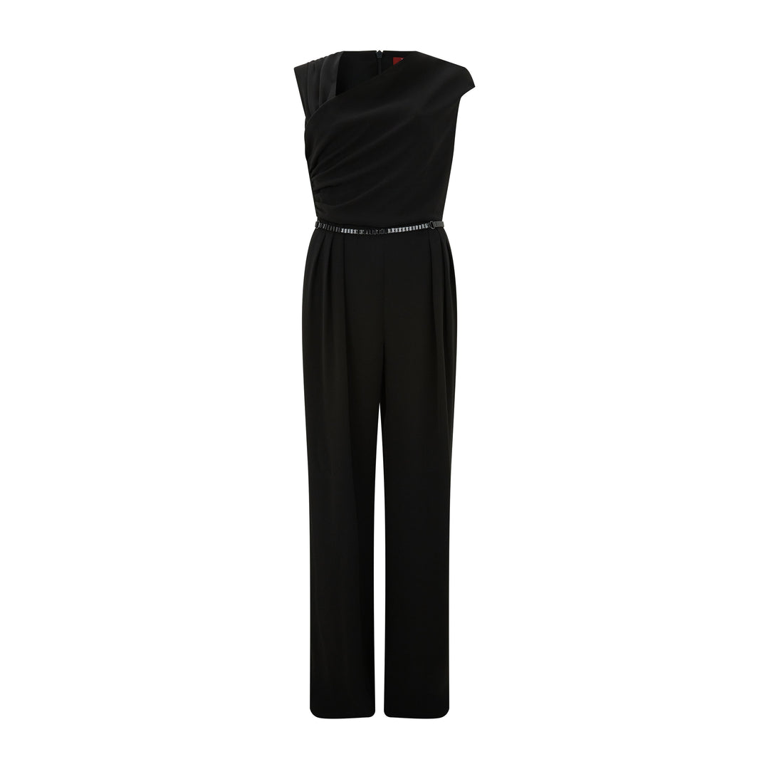 Max Mara Studio's Filante jumpsuit features a silhouette with a draped asymmetric bodice and wide-leg trousers with double pleats on the front. Features an invisible zip for closer on the back and side pockets. Comes with a matching embroidered belt that allows you to accentuate the waist.