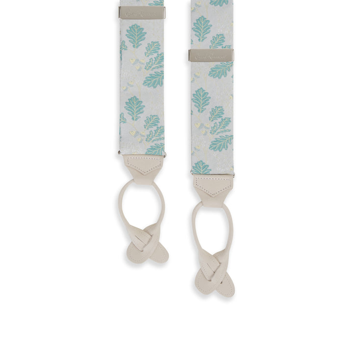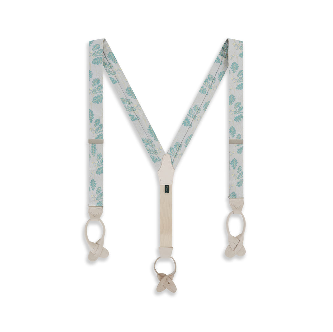 Crafted in England, this jacquard design is ideal for a formalwear occasion. They feature parchment leather button ends and engraved hand polished nickel levers. Fully adjustable they make a stylish alternative to a belt
