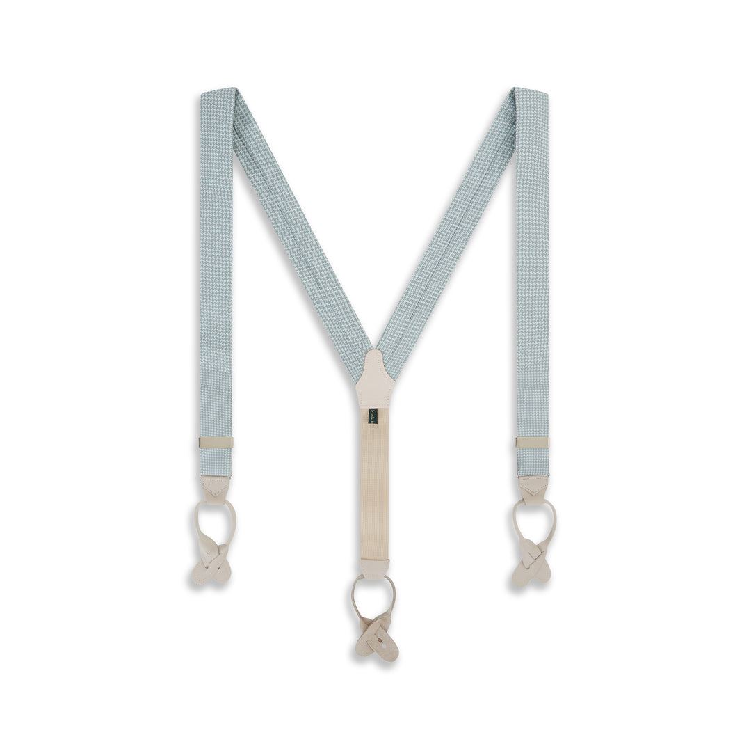Crafted in England, this houndstooth design is ideal for a formalwear occasion. They feature parchment leather button ends and engraved hand polished nickel levers. Fully adjustable they make a stylish alternative to a belt