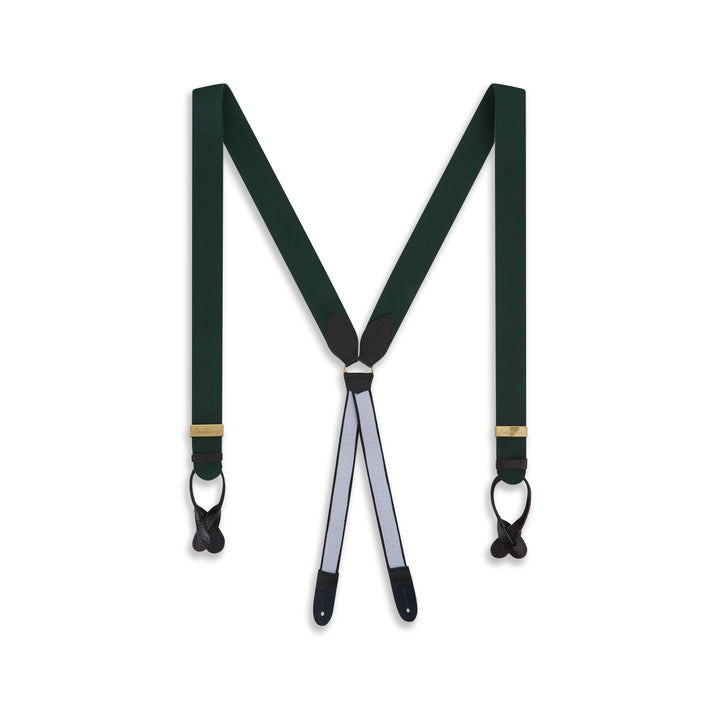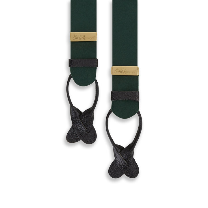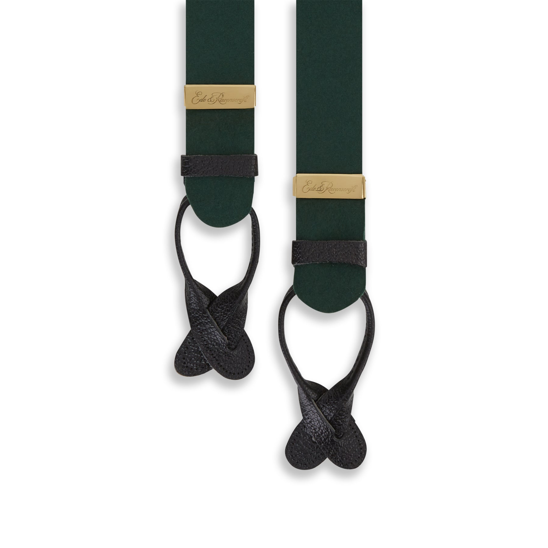 Crafted in England, these traditional box cloth braces feature black leather button ends and engraved hand polished brass levers. Fully adjustable they make a stylish alternative to a belt.