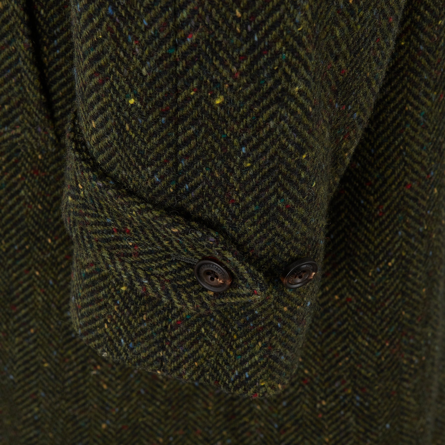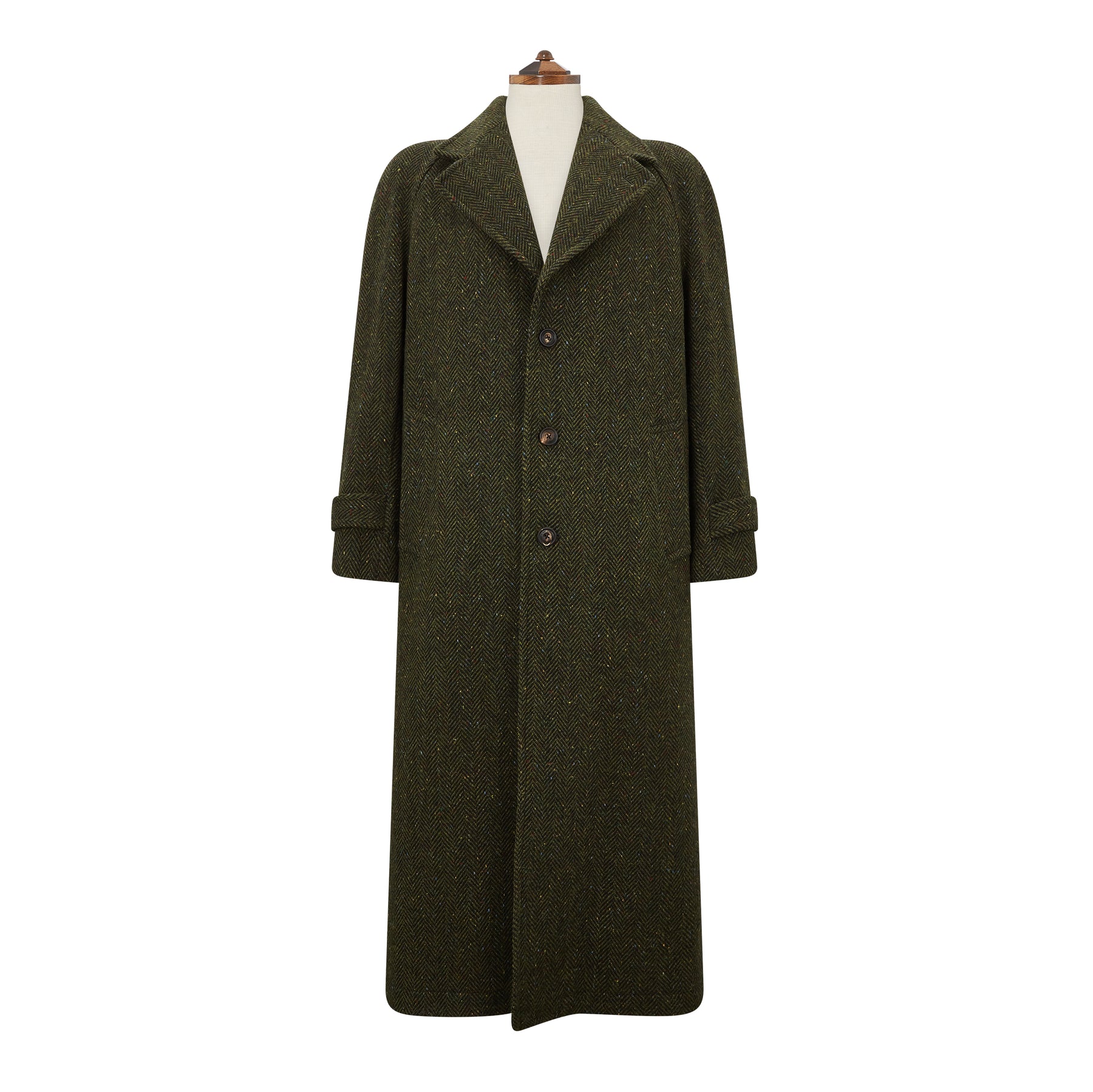 The Harrogate coat is crafted from a heavy wool Irish Donegal herringbone and features a raglan sleeve and back pleat detailing. It is the perfect coat to shield you from the elements, fitting effortlessly over suiting or casual garments.