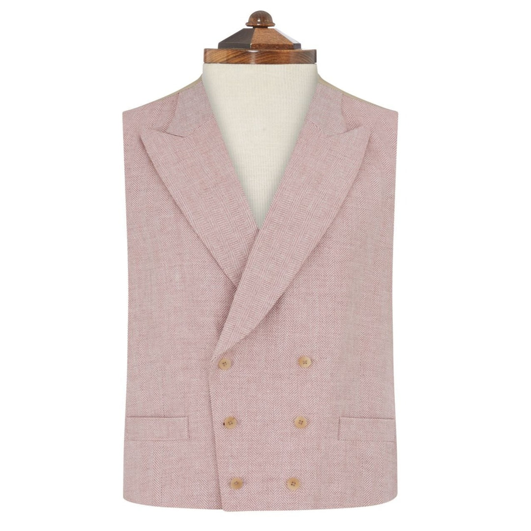 This double breasted waistcoat with a six button closure is offered in an Italian linen with an internal ring/ticket pocket, is perfect for summer parties and occasions. Pair with matching jacket