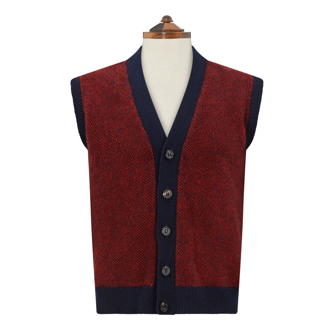 Spun from a 2ply Scottish wool and knitted in a birdseye pattern, the Kells vest is a perfect layering piece that can be worn on weekends or in the office. Pair with casual trousers or wear under a blazer for added warmth.