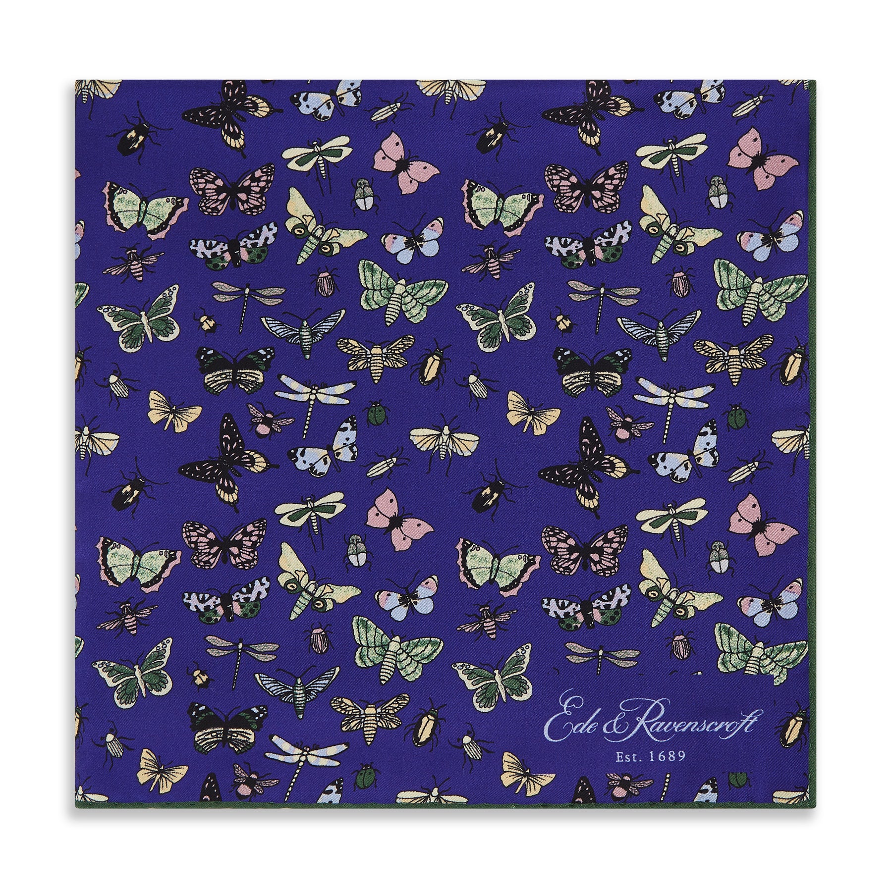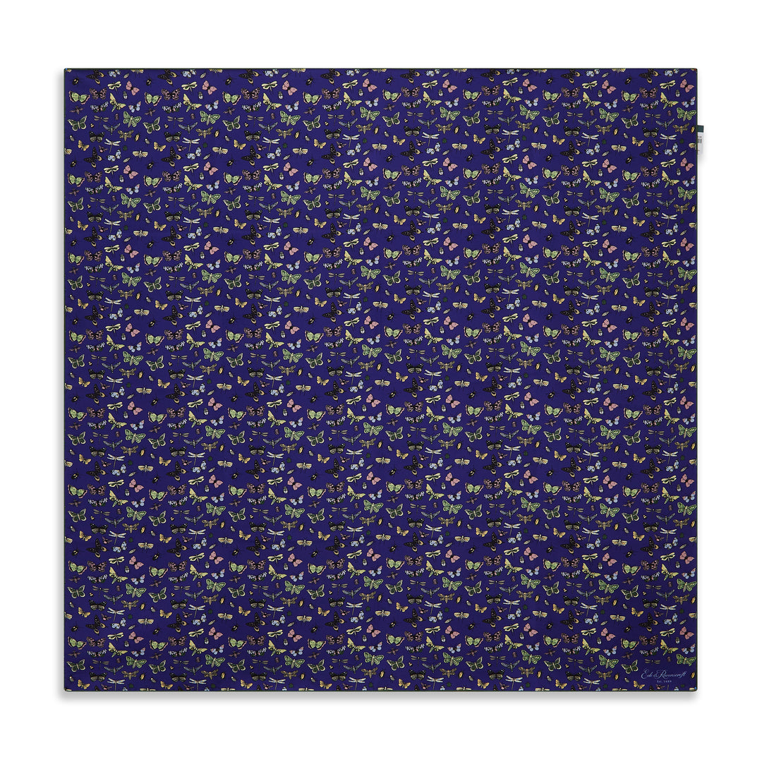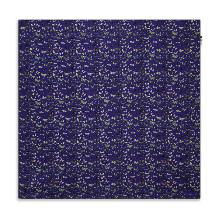 Navy Green Butterfly Silk Square Scarf