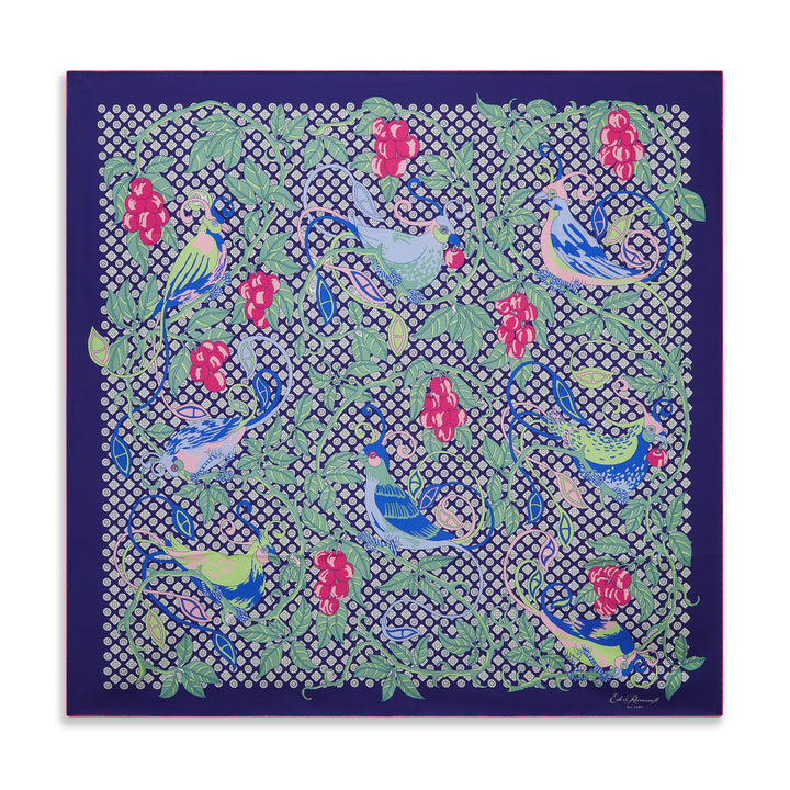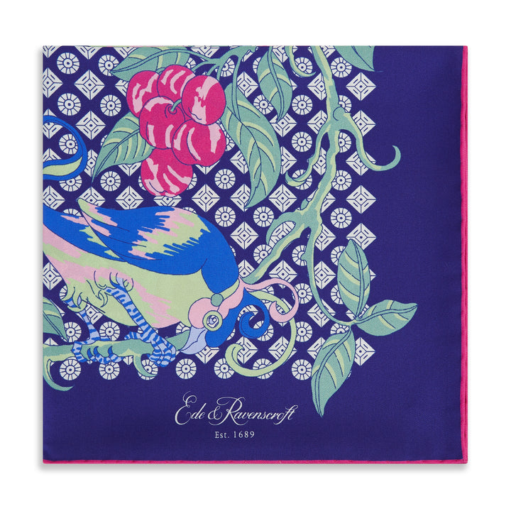 An elegant silk scarf, featuring a Parrot print through-out the scarf. Crafted from soft, delicate silk, which feels divine next to the skin, this luxurious scarf offers a beautiful pop of colour to any outfit.