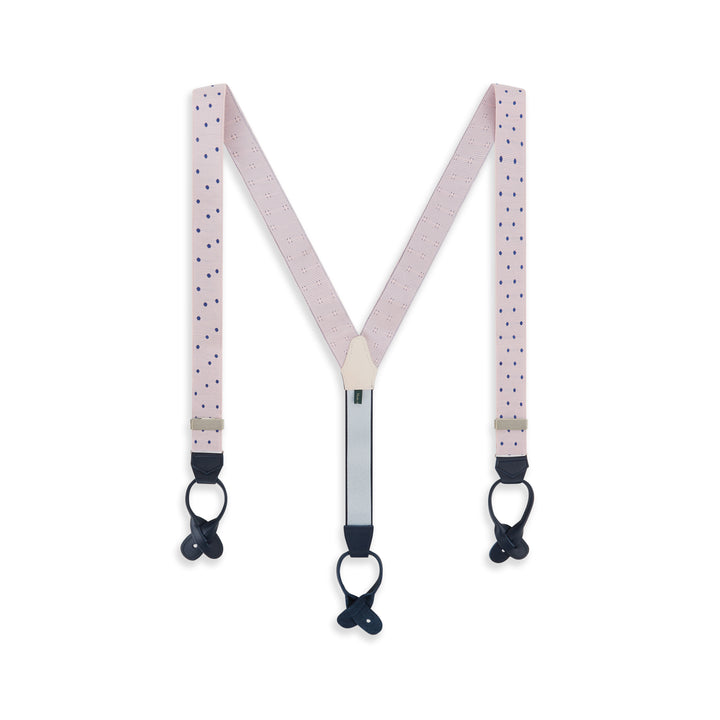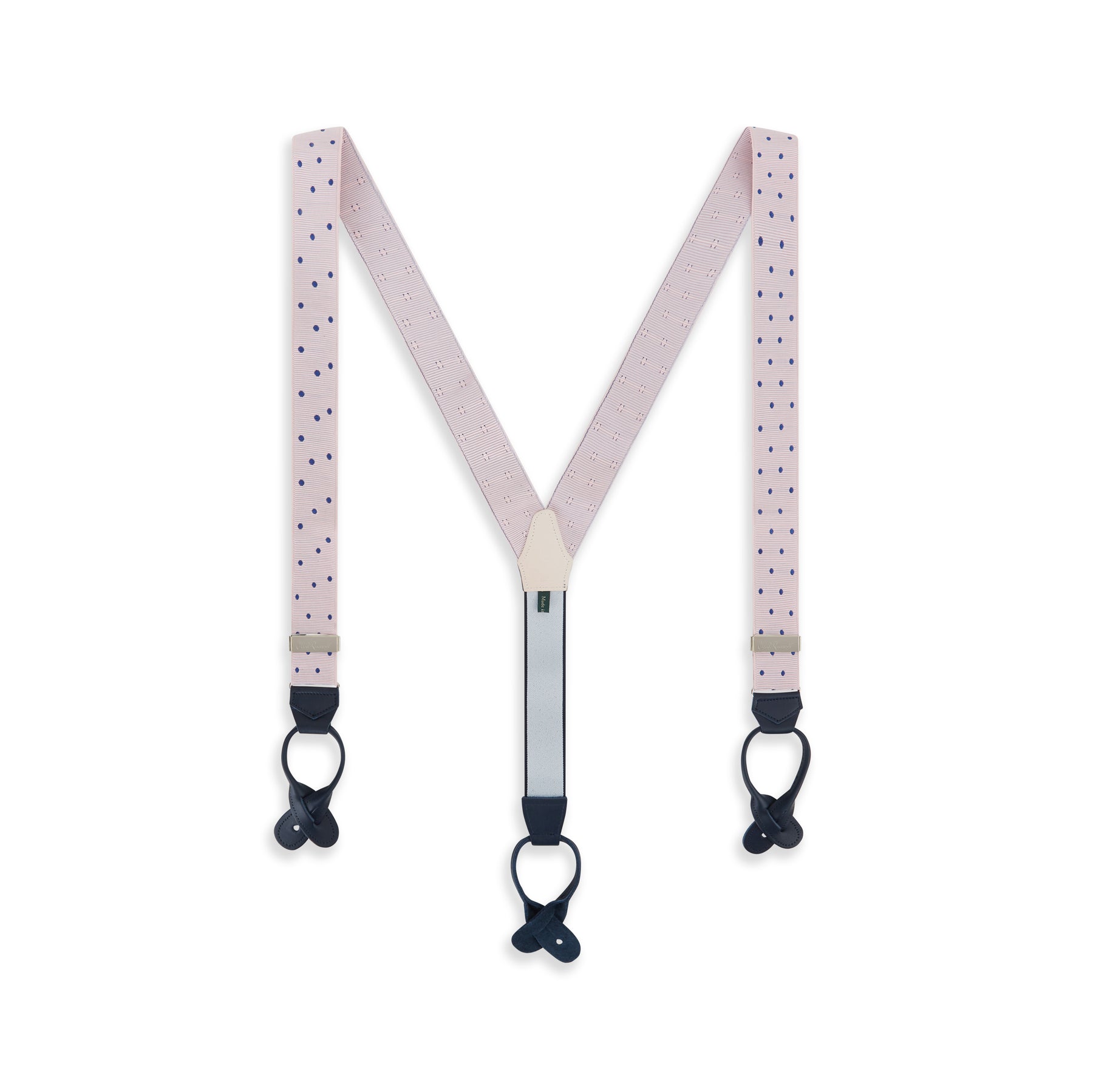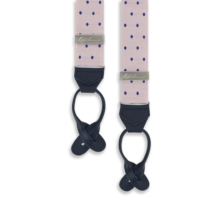 Crafted in England, these webbed braces feature a traditional Churchill spot design with contrast leather button ends and engraved hand polished nickel levers. Fully adjustable they make a stylish alternative to a belt.